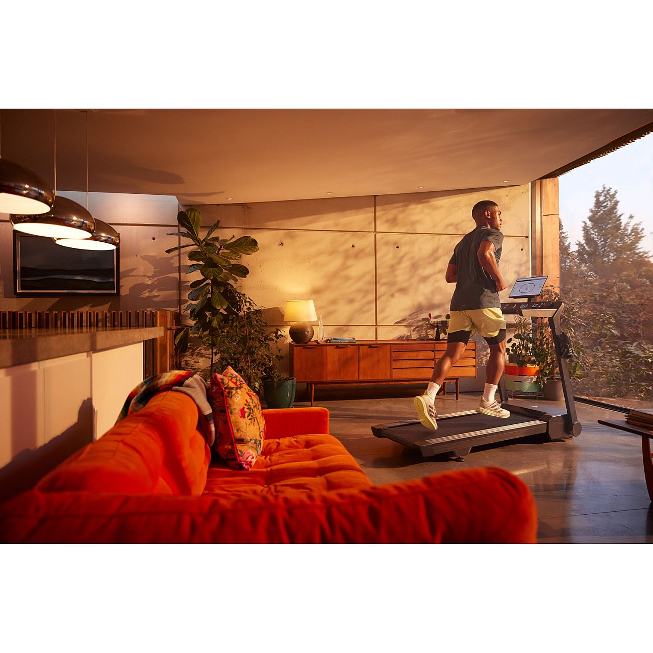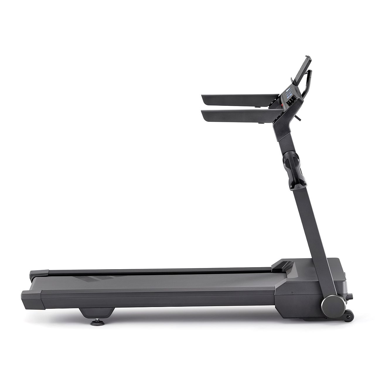 Контролюйте ефективність за допомогою інтуїтивно зрозумілого інтерфейсу консолі T-24c. Плавно регулюйте швидкість і нахил на ходу, в той час як світлодіодний дисплей відображає показники ефективності в реальному часі, дозволяючи вам тренуватись сильніше та бігати розумніше. Тримайте свої розваги на передньому плані за допомогою вбудованого тримача, що обертається, для пристроїв, який забезпечує ідеальний кут огляду.