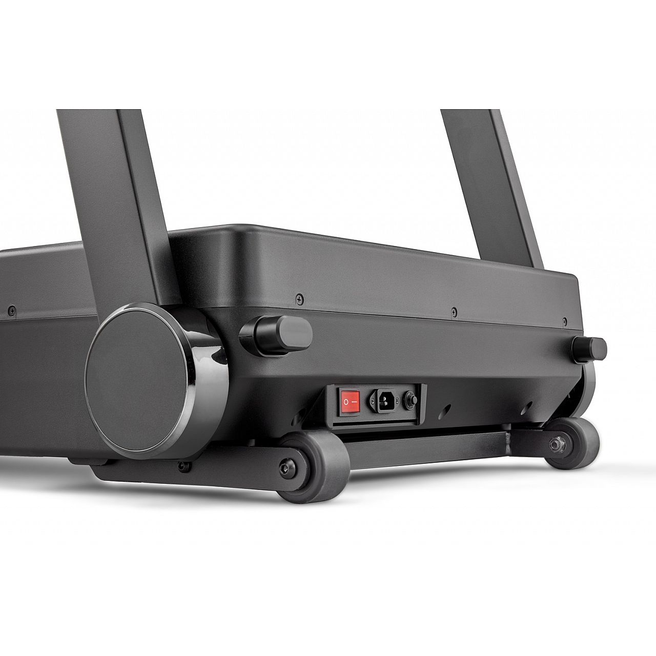 Завдяки м'якій біговій деці з амортизаторами T-24c захищає ваші суглоби, поглинаючи удар від кожного руху ногою. Розроблена для тривалої роботи, міцна, але доладна рама може похвалитися максимальним навантаженням користувача вагою до 110 кг. Вбудовані колеса транспортування забезпечують легке переміщення по будинку, а регулювання за рівнем підлоги забезпечує стійкість, створюючи чудову основу для тренувань.
