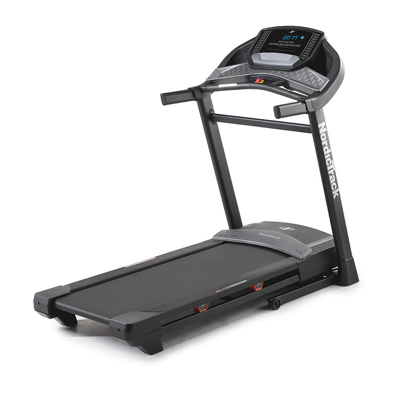 Представляємо оновлену популярну модель бігової доріжки NordicTrack T7.0 NEW. Основна відмінність від минулої моделі – це нове бігове полотно розміром 460 х 140 см та нова консоль управління з 5" екран високої чіткості. Як і раніше, доріжка має потужний мотор 2,75 к.с., передову посилену систему амортизації FlexSelect™ зі змінною жорсткістю. Нагрудний кардіодатчик як опція можна підключити по Bluetooth® каналу.