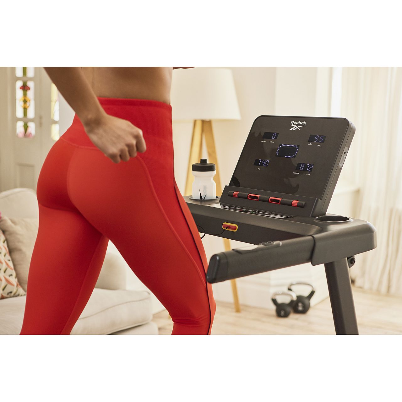 Вбудовані динаміки дозволяють підключити смартфон, щоб ви могли поринути у улюблені треки тренувань під час бігу. Регульований вентилятор допомагає зберігати прохолоду та імітує біг на вулиці. Уникнути зневоднення можна зі зручно розташованим утримувачем для пляшок з водою. Коли ви закінчите тренування, використовуйте механізм складання Soft Drop, щоб скласти бігову доріжку та заощадити місце під час зберігання.
