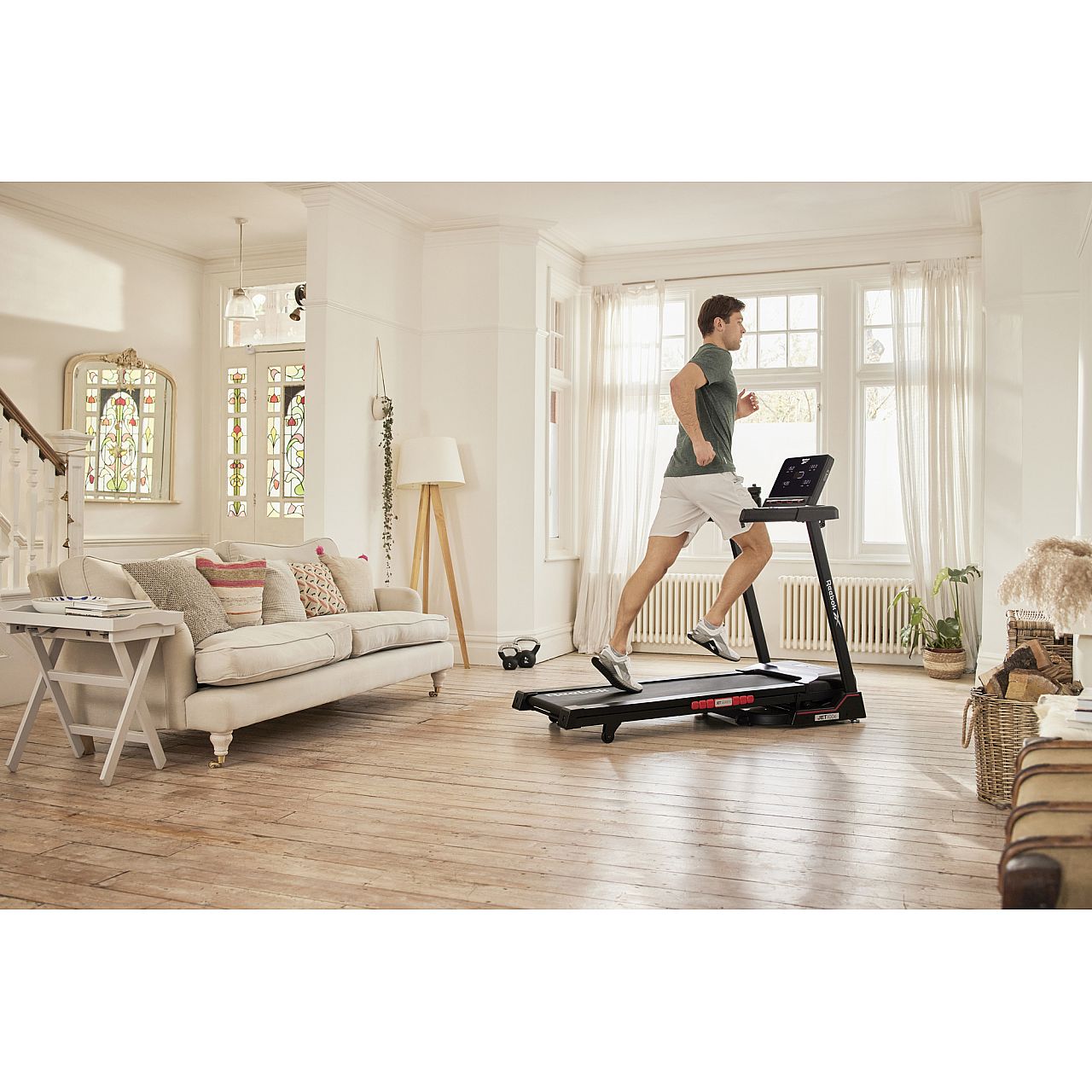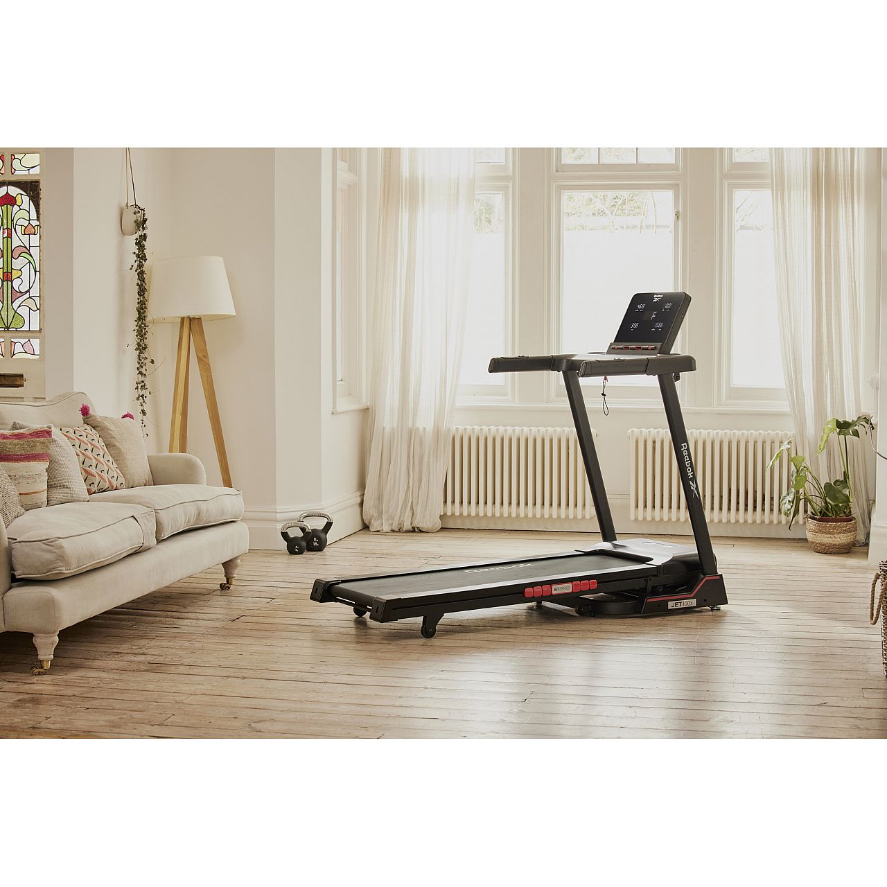 Бігова доріжка Reebok JET 100x RVJF-10021 ідеально підходить для домашніх кардіотренувань завдяки двигуну потужністю 2,0 к.с., який забезпечує швидкість 1-18 км/год на 12 рівнях нахилу. Розроблений з використанням технології амортизації Air Motion, Jet 100x реагує на кожен удар ногою, передаючи повітря між подушками, що амортизують, щоб забезпечити підтримку там, де це найбільше необхідно, і привносячи комфорт і ефективність під час бігу.
