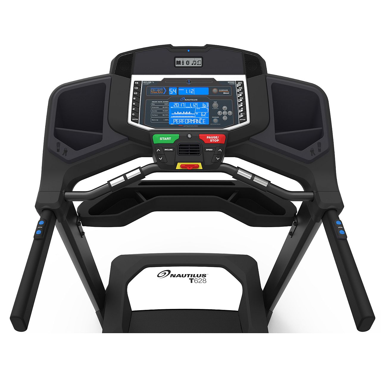 Електрична бігова доріжка Nautilus T628 має датчики частоти серцевих скорочень, вбудовані в опорні рейки , які дають змогу проводити дротове вимірювання. У набір бігової доріжки також входить телеметричний пояс для бездротового вимірювання пульсу . Завдяки двом параметрам вимірювання контролювати діапазони пульсу користувача легше, ніж зазвичай. Додаткові зручності бігової доріжки T628 включають USB-порт для зарядки, вентилятор з 3 рівнями повітряного потоку, транспортувальні колеса, полицю для аксесуарів і кишені для аксесуарів, які ідеально підходять для зберігання води або мобільного пристрою під час тренування.