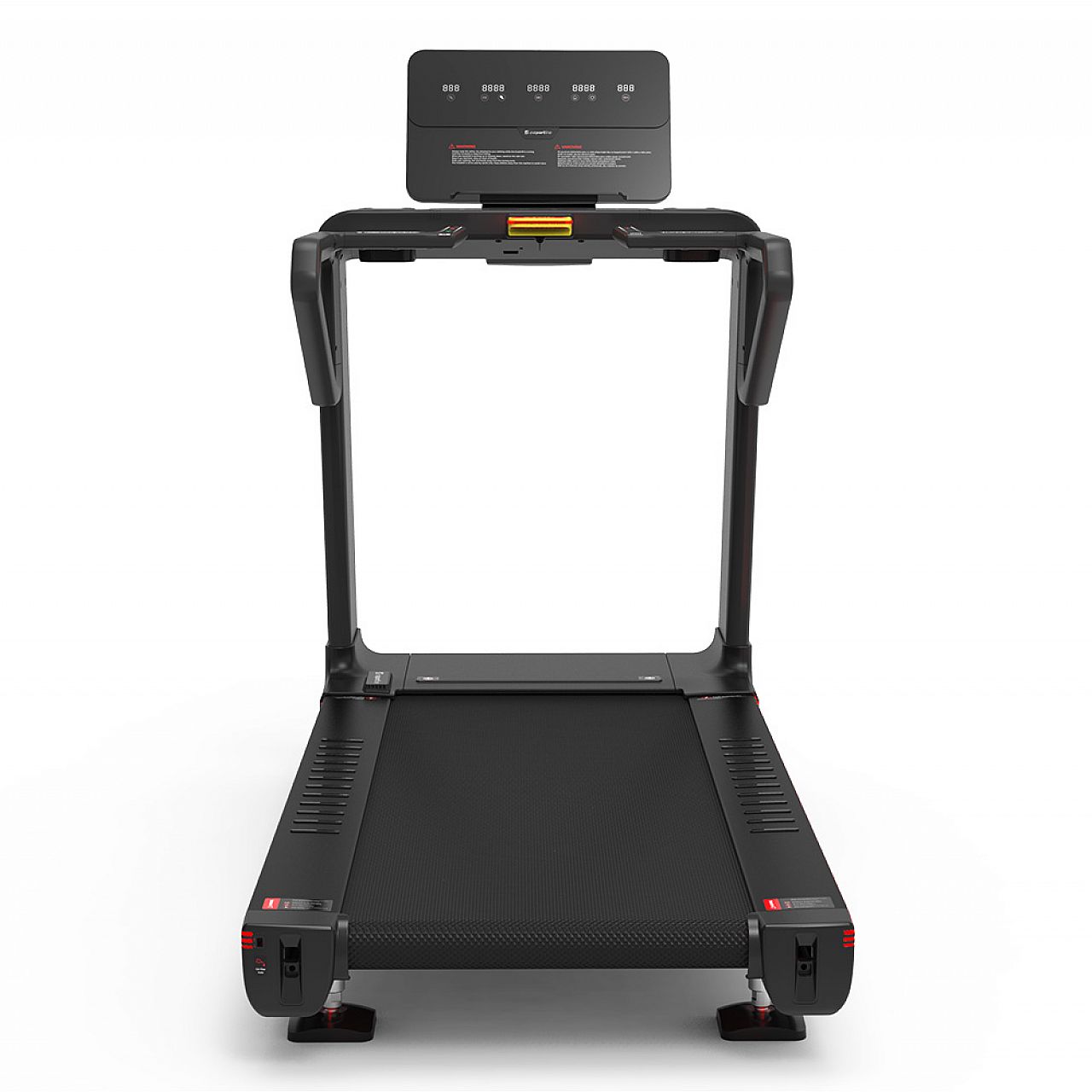 Рама була розроблена, щоб ви відчували себе комфортно та безпечно під час бігу. Елегантні бічні ручки забезпечують миттєву підтримку, а коротші передні ручки мають кнопки, які дозволяють швидко змінювати швидкість і нахил відповідно. Більше того, ручки мають вбудовані датчики пульсу . Однак ви також можете поєднати бігову доріжку з нагрудним ременем, якщо хочете. Крім того, є запобіжне гальмо , яке миттєво зупиняє бігову доріжку.