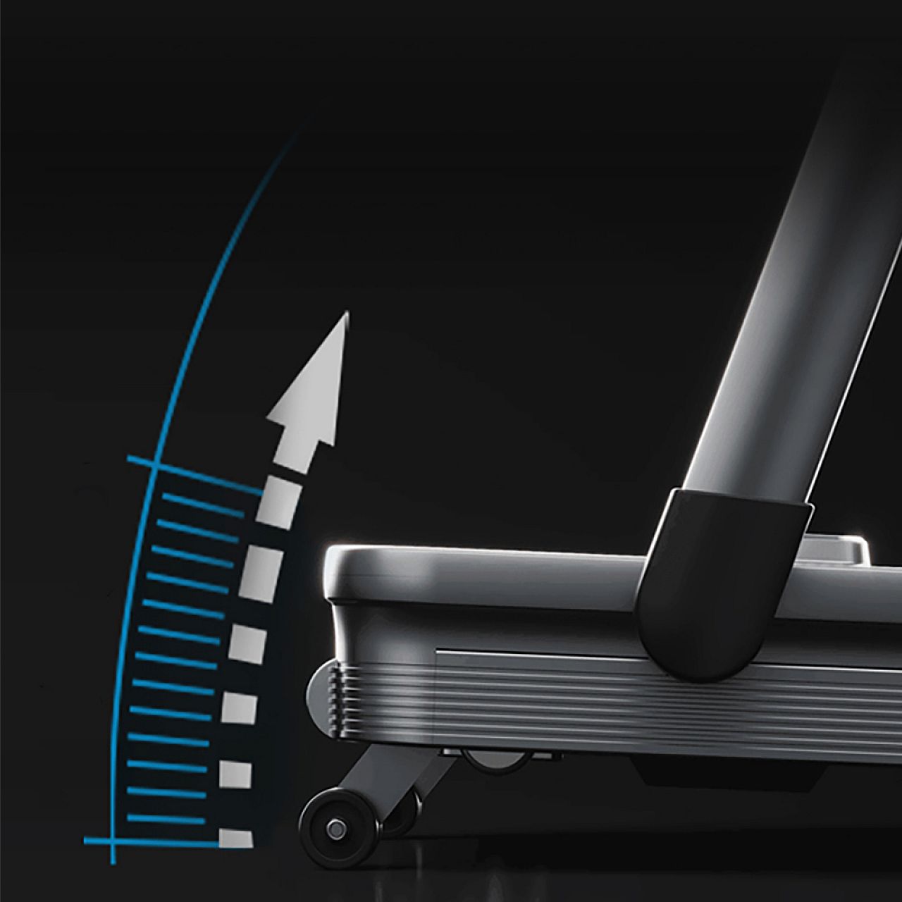 Ця бігова доріжка надзвичайно проста у використанні, тож вам не доведеться нічого налаштовувати . Великий дисплей, який легко читається, відображає всі важливі дані , такі як швидкість, відстань, калорії або час. Завдяки нагрудному ременю, що входить в комплект, ви можете відстежувати пульс під час тренування.