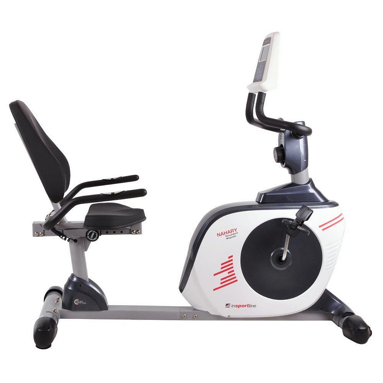 Ефективність вправ забезпечує 7 кг маховика з магнітною системою гальмування, яка має 8 ступенів навантаження . InSPORTline Nahary має вбудовані датчики для вимірювання різних параметрів тренування. Комп'ютер з великим та чітким РК-дисплеєм відображає всі необхідні відомості, такі як час, швидкість, відстань, калорії та пульс. Дисплей може регулюватися по вертикалі, щоб отримати найкращий кут огляду. Завдяки цим властивостям горизонтальний велотренажер inSPORTline Nahary є найпопулярнішим пристроєм для домашнього використання.