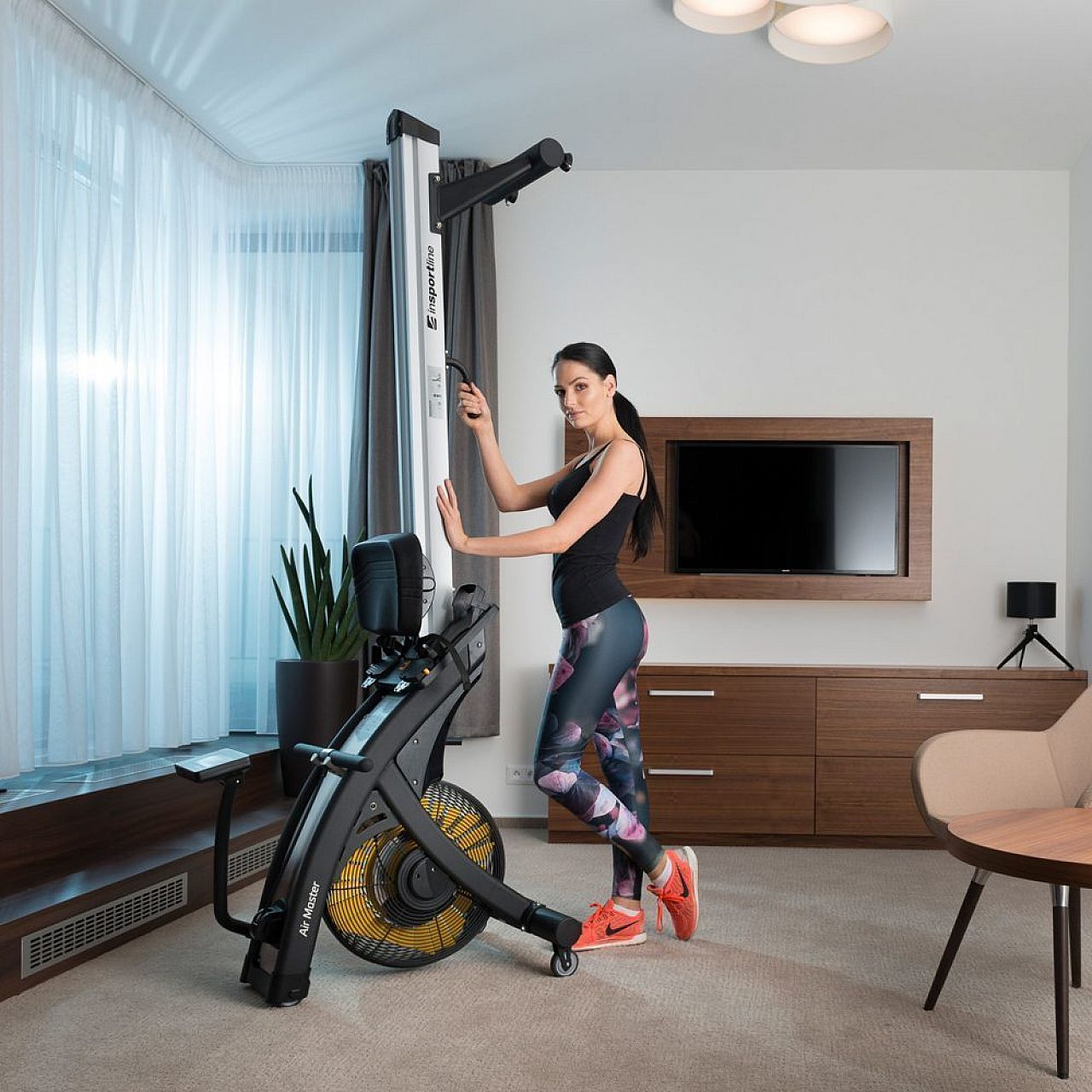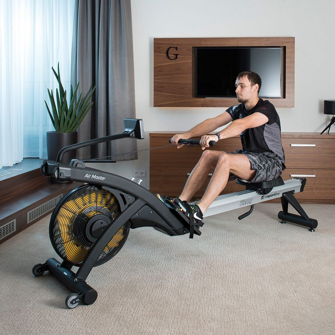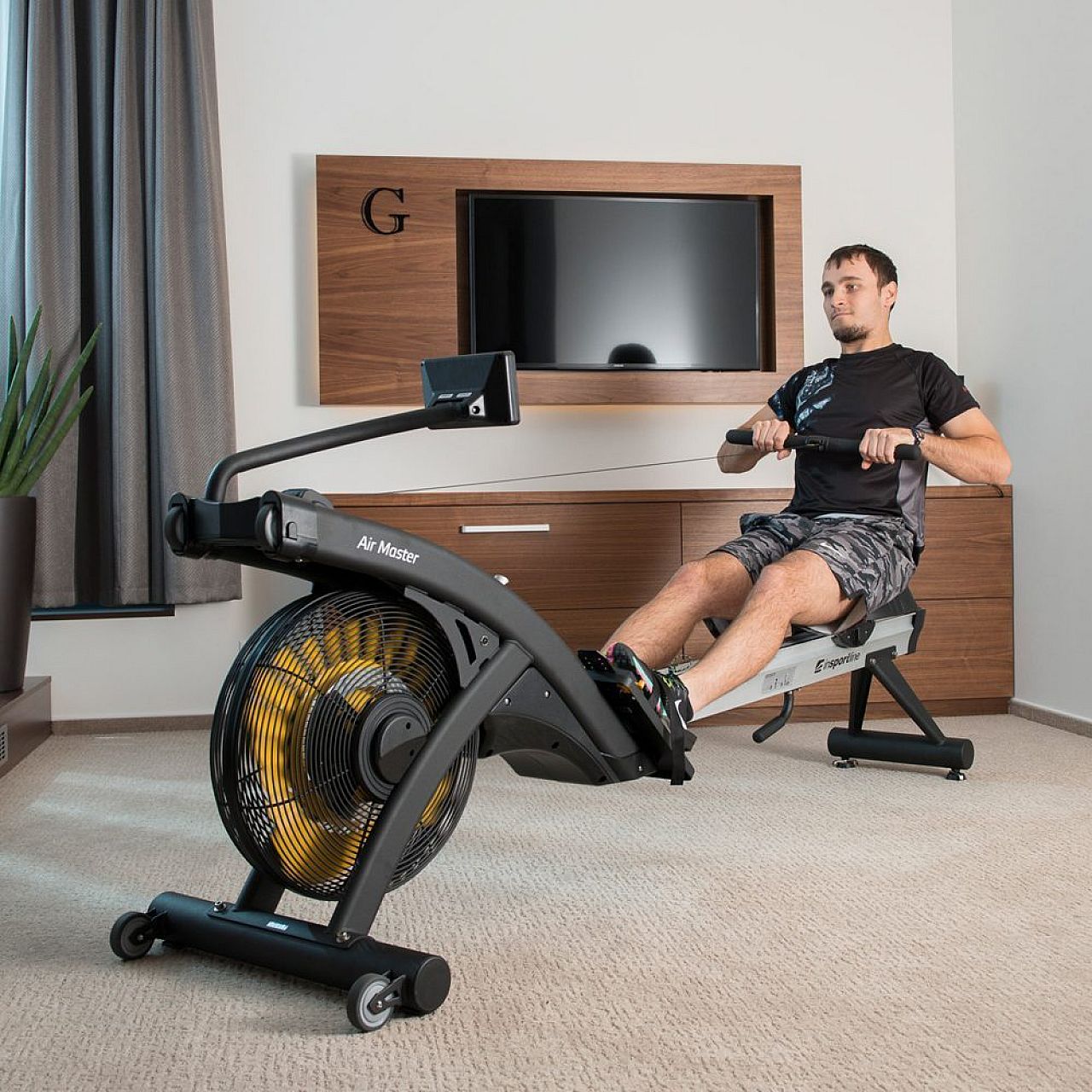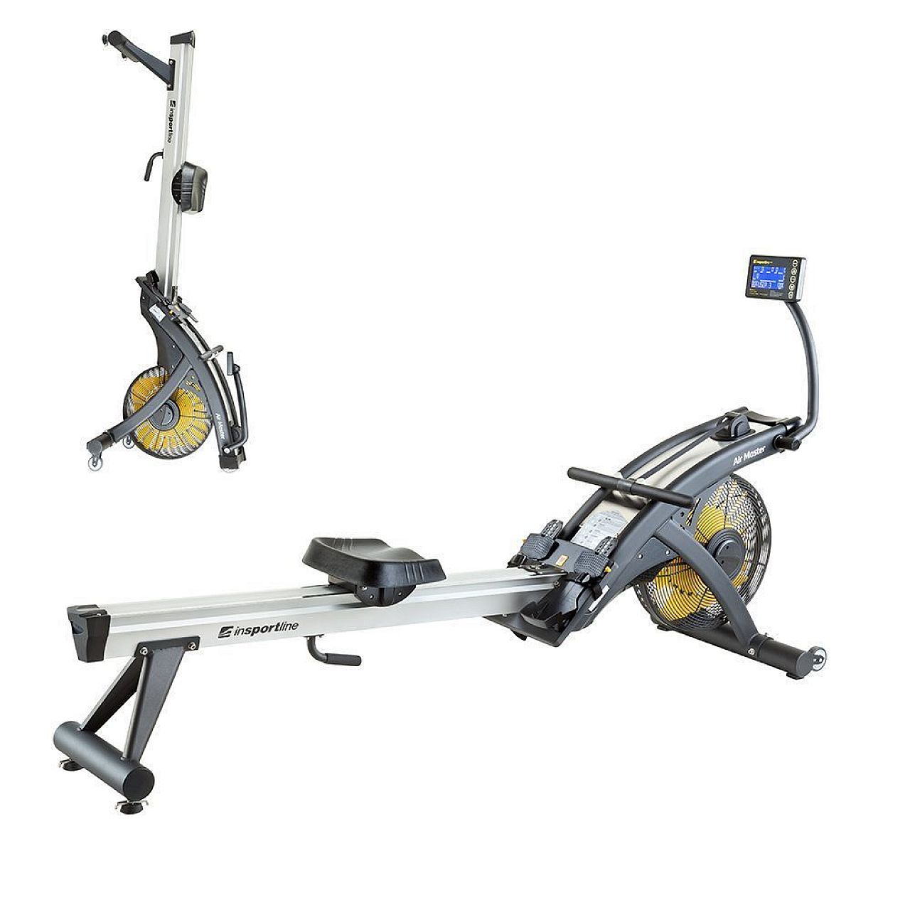Управління гребного тренажера inSPORTline Air Master повністю електронне. InSPORTline Air Master має зручний для читання і простий у використанні дисплей з підсвічуванням, на якому ви можете стежити за всією важливою інформацією, такою як: час, відстань, опір, кількість гребків, калорії, що спалюються, час на 500 м, гребки за хвилину частоту пульсу (яка вимірюється через нагрудний пояс). Ви можете вибрати одну з 20 програм (12 попередньо встановлених та 5 програм користувача). Ви також можете оцінити програму HRC (вправу засновану на частоті пульсу) та програму WATT на основі продуктивності. Ручна програма є обов'язковою. Все вищевикладене робить гребний тренажер inSPORTline Air Master ідеальним доповненням до професійних, клубних та домашніх залів.