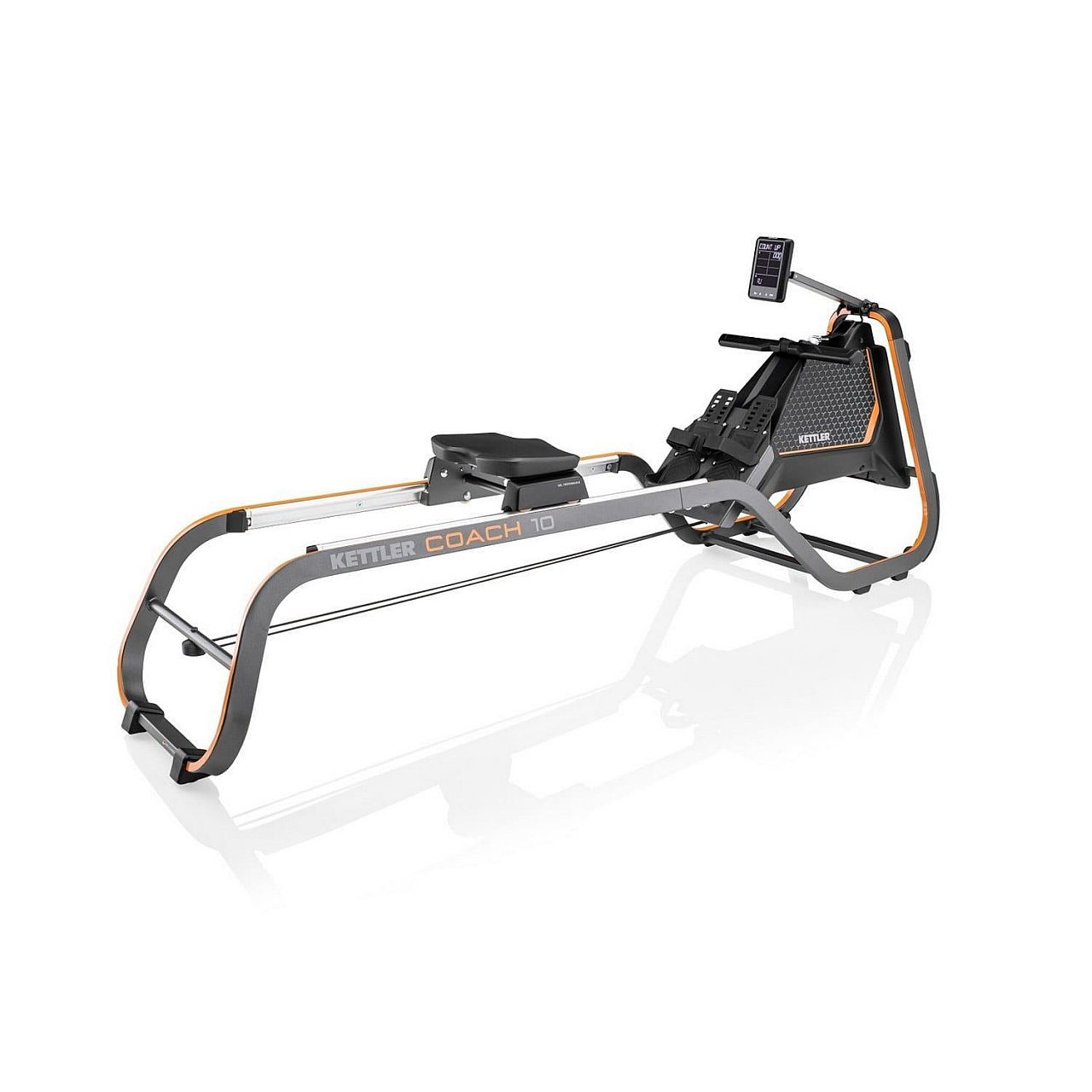 Новий Kettler Coach 10 є найпотужнішим тренажером з нової серії Coach. Оснащений дуже тихим та необслуговуваним індуктивним гальмом, опір можна регулювати на 10 рівнях – від 25 Вт до 600 Вт. Такий великий діапазон робить цей тренажер таким же цікавим пристроєм для початківців, як і більш просунутих спортсменів - любителів і веслярів. Дозвіл для використання у фітнес-клубах, які пов'язані з частими та інтенсивними тренуваннями означає, що він пристосований для екстремальних вимог. Цікавою деталлю тут є ручки, що знімаються. Завдяки двом власникам Multi-Move спортсмени можуть тренуватися інтенсивніше.