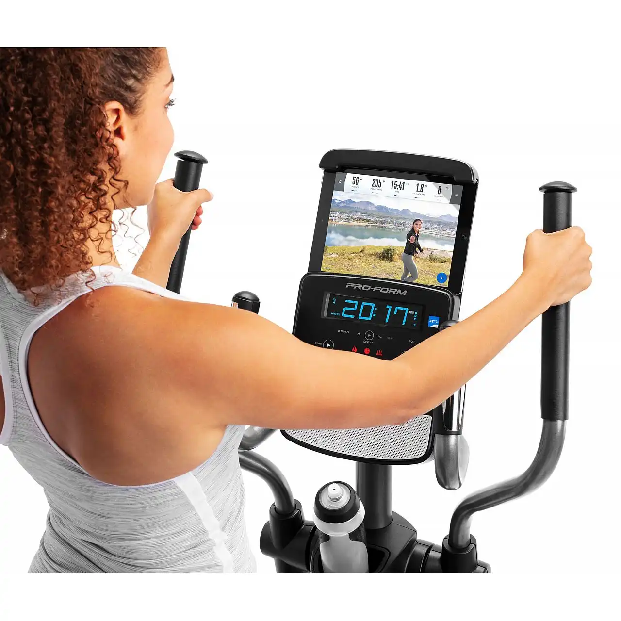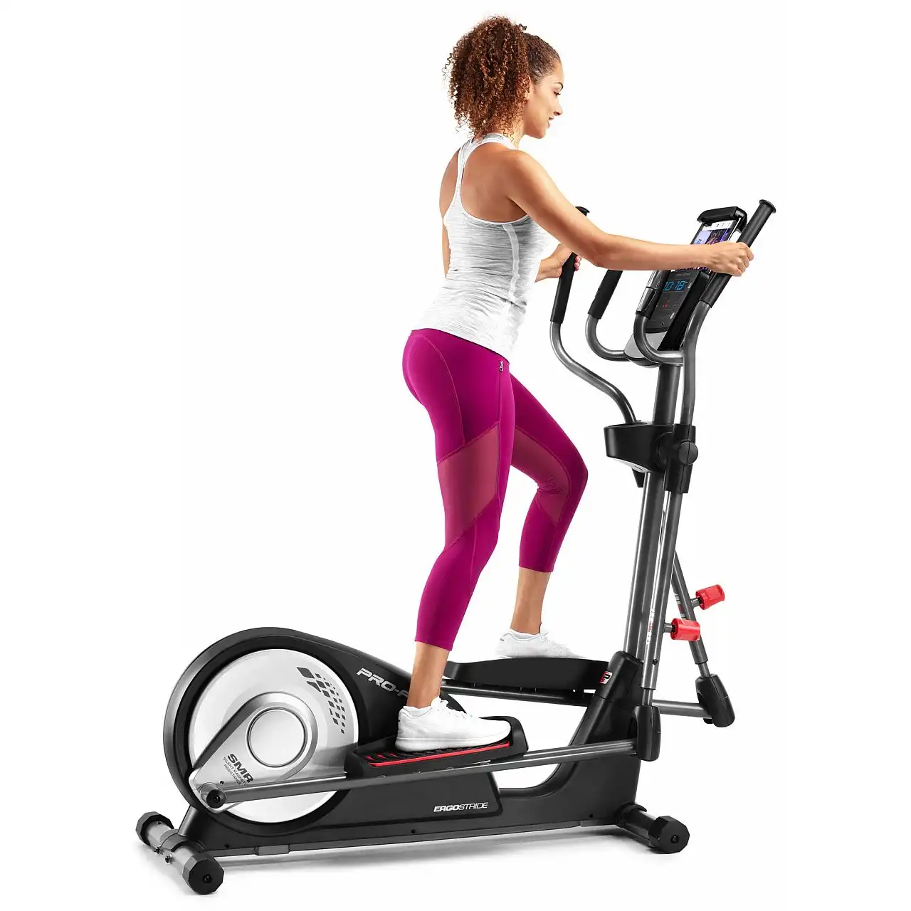 Консоль з LCD-дисплеєм та інтуїтивним інтерфейсом підтримує з'єднання Bluetooth для нагрудного датчика пульсу та смарт-пристроїв через програму iFit. Просто завантажте програму iFit Coach Redy з App Store або Google Play на ваш телефон або планшет, і дотримуйтесь інструкцій зі створення облікового запису iFit та встановлення налаштувань. Тренажер також має тримач для планшета та пляшки, роз'єм для підключення музичного плеєра та транспортувальні ролики для легкого переміщення після тренування.