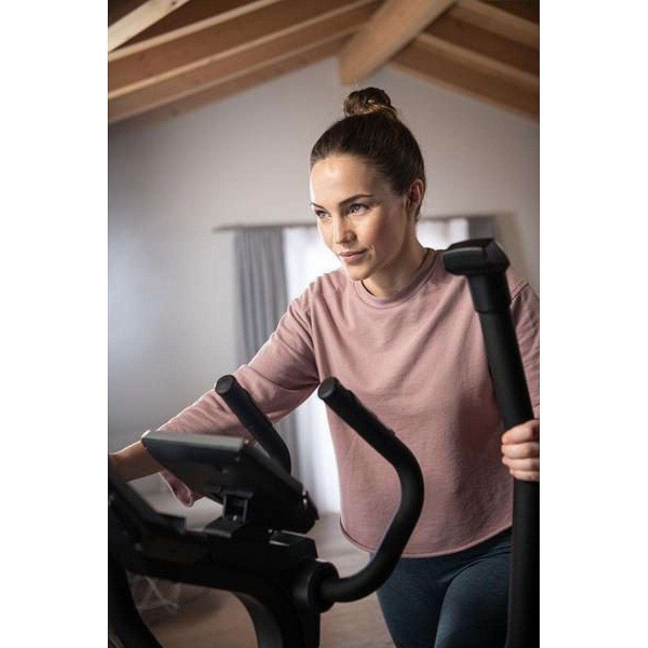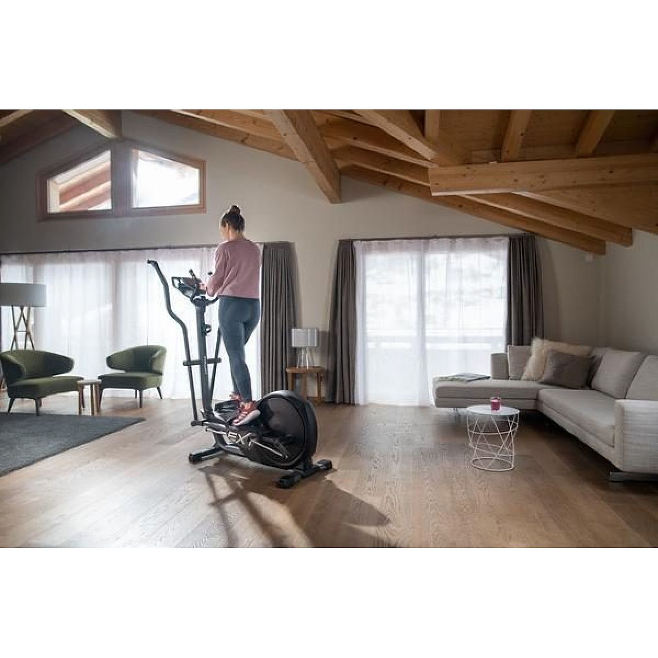 Тиха та плавна робота дозволяє тренуватися вдома. Транспортні колеса дозволяють зручно переміщати еліптичний кростренажер після тренування.