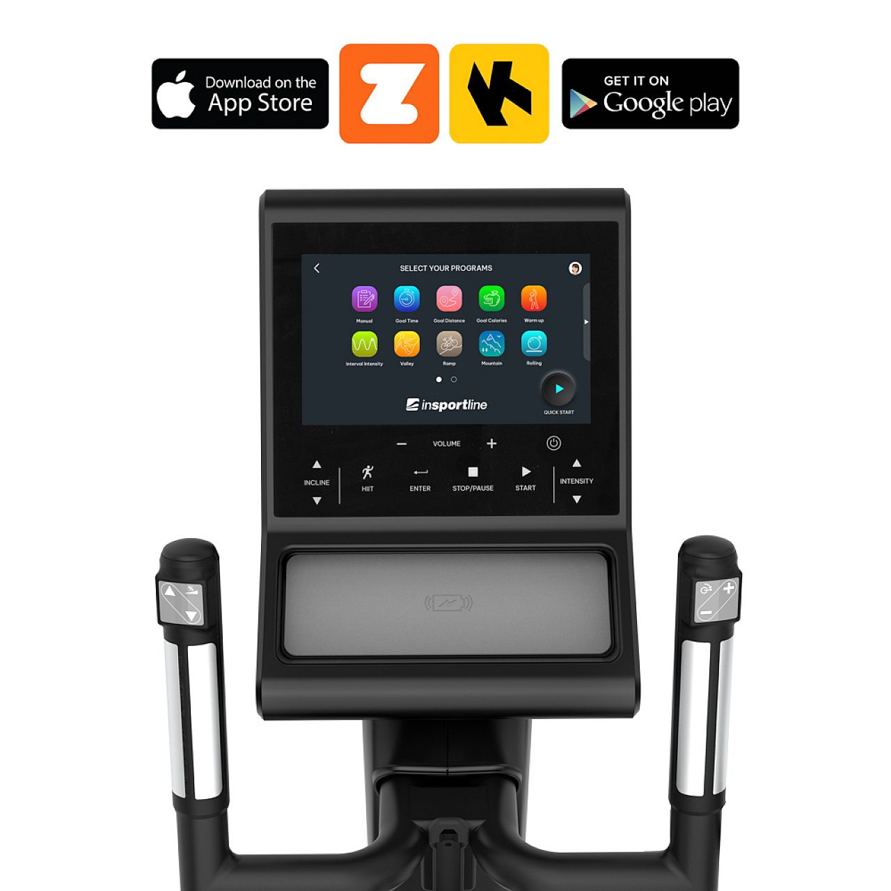 Еліптичний тренажер inSPORTline Velocer ET пропонує можливість підключення до популярних фітнес-додатків, таких як Zwift або Kinomap . Завдяки їм ви можете брати участь у віртуальних перегонах , наприклад, пробігти Паризький марафон або прогулятися норвезькими лісами . Ви можете вибрати з величезного вибору.