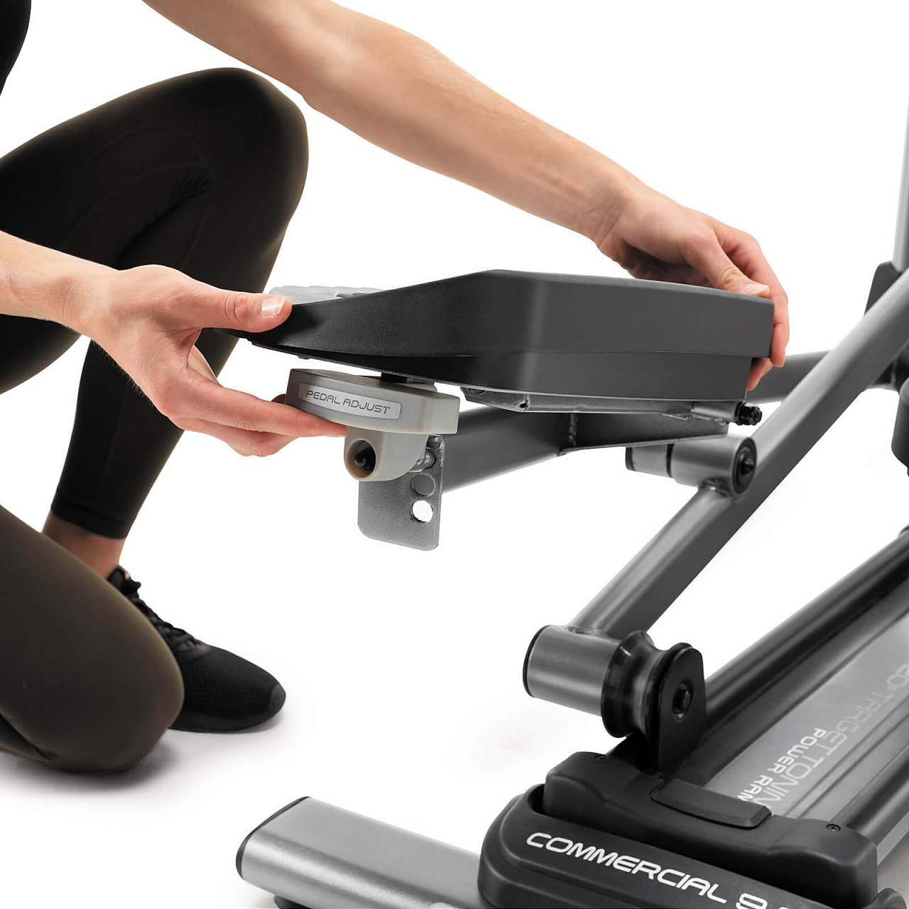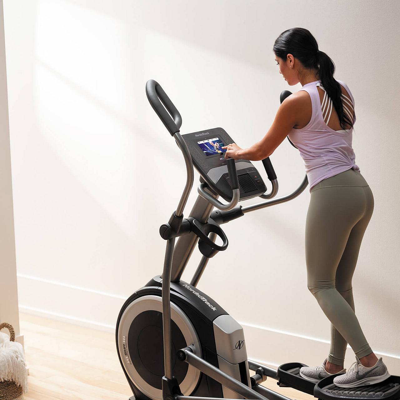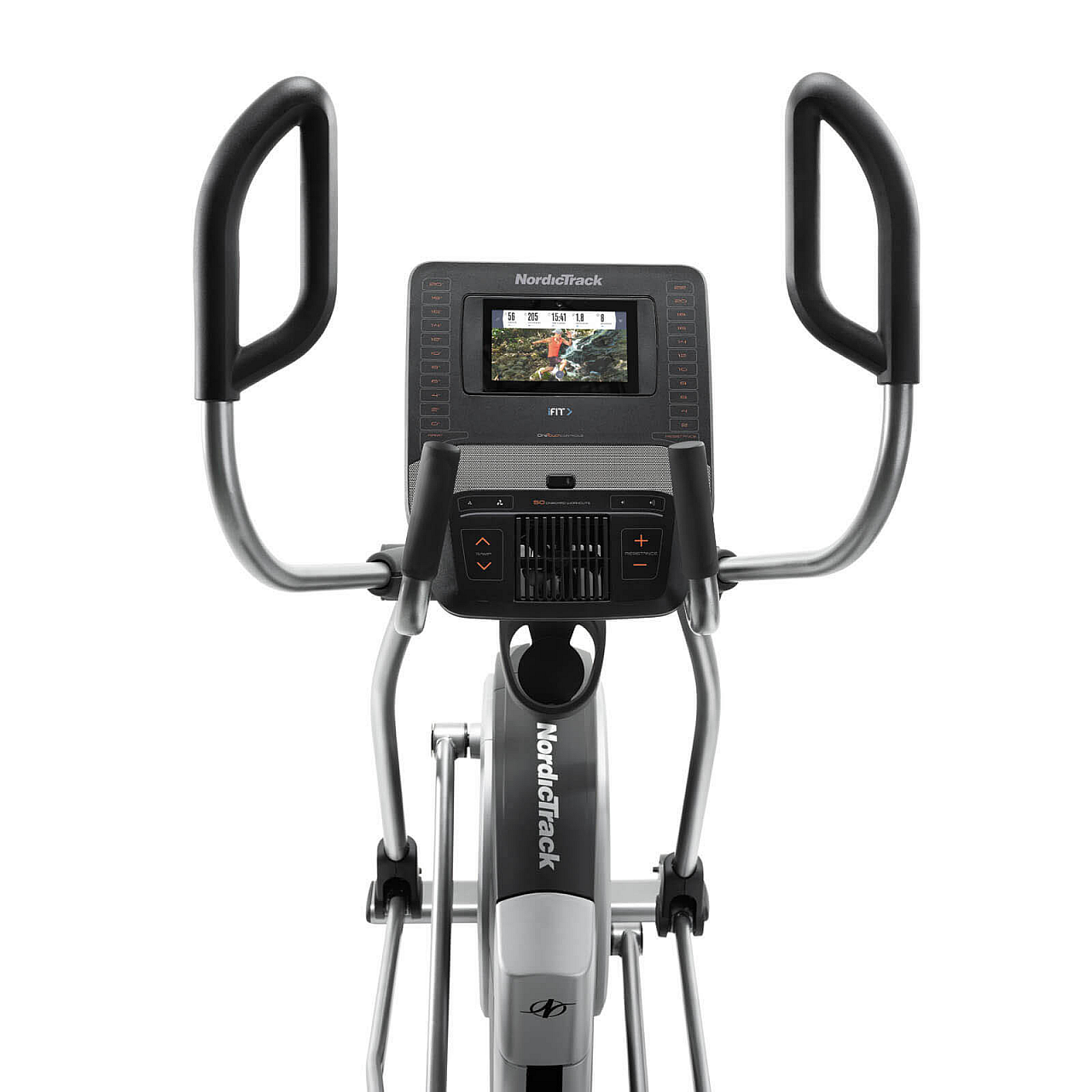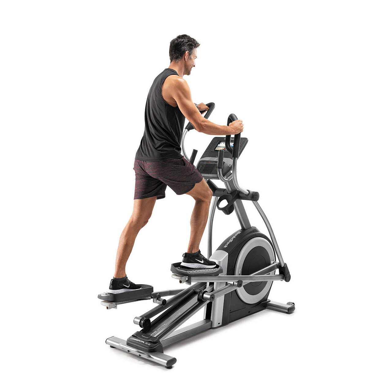 Програмований еліптичний тренажер Commercial 9.9 від NordicTrack — міцне, міцне та багатофункціональне обладнання з маховиком спереду, призначене для інтенсивних тренувань вдома. Еліптичний тренажер має всі параметри і функції, необхідні для проведення різноманітних тренувань. Користувач неодмінно помітить додаткове обладнання у вигляді 7-дюймового кольорового сенсорного екрану, який контролює параметри тренувань і дозволяє вибирати програми тренувань з понад 11 000, доступних при активному членстві iFit®. Еліптичний кростренажер має 22 рівні магнітний опір, широкі нековзні напрямні та зручні контурні ручки.