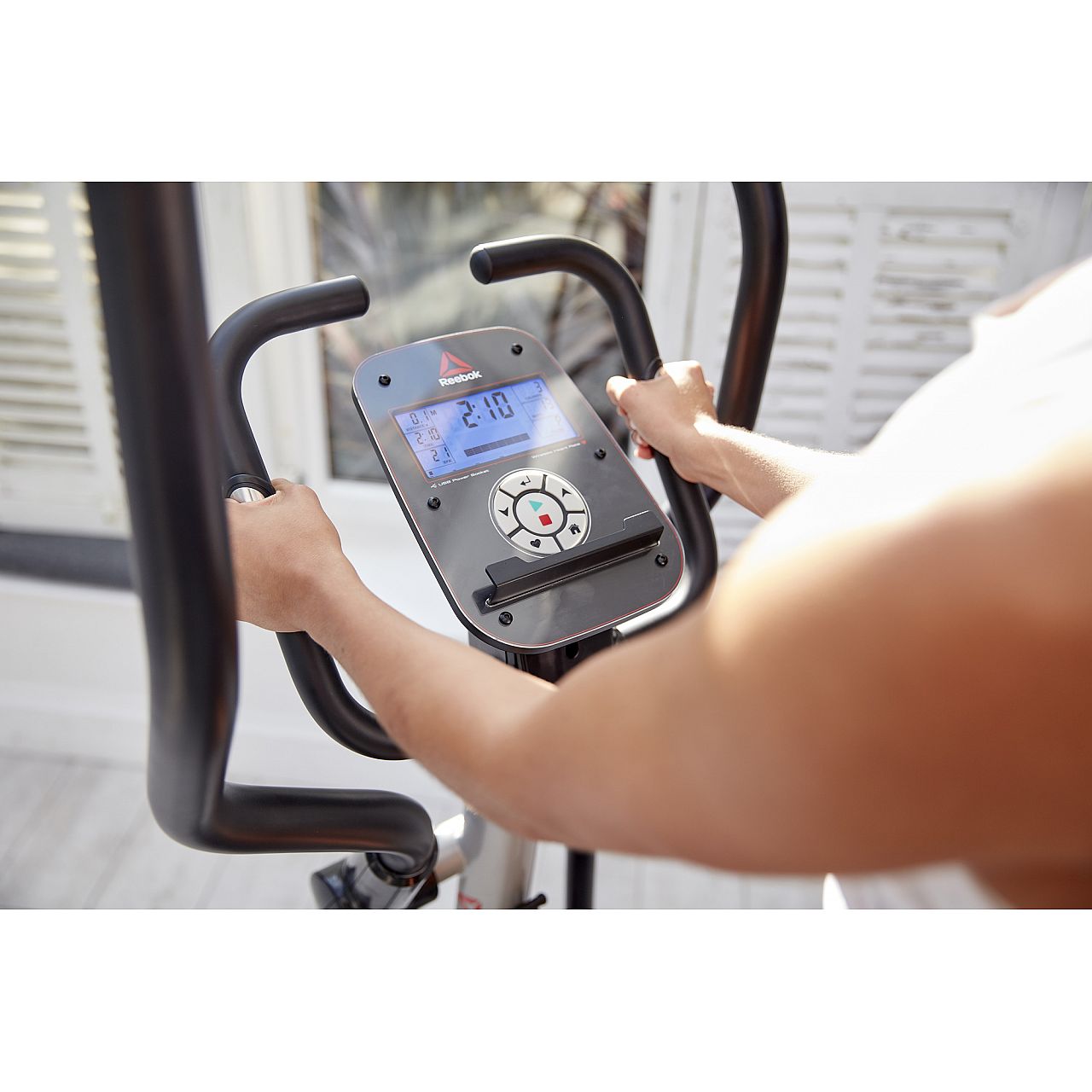 Орбітрек Reebok A6.0 Cross Trainer RVAR-10611SL, створений для вимогливих домашніх кардіотренувань, повністю обладнаний для підвищення вашої витривалості при мінімальному впливові на суглоби. В основі A6.0 лежить міцний і надійний маховик вагою 9 кг, що забезпечує плавне обертання. 32 рівні електромагнітного опору і встановлені програми ідеально підібрані як для тривалих, так і для коротких інтервальних тренувань з високим навантаженням.