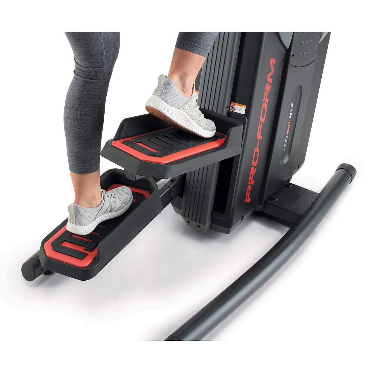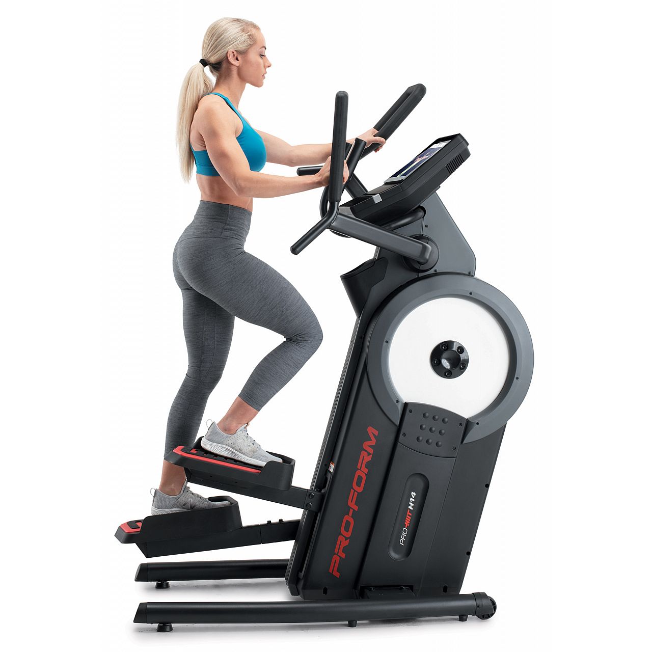 Степпер-орбітрек ProForm Pro HIIT H14 поєднує в собі функції степпера та еліпса, що дозволяє, не перериваючись, опрацьовувати різні групи м'язів. Завдяки центральному розташуванню маховика тренажер має більш компактні розміри та стійкіший, ніж традиційні еліпсоїди.