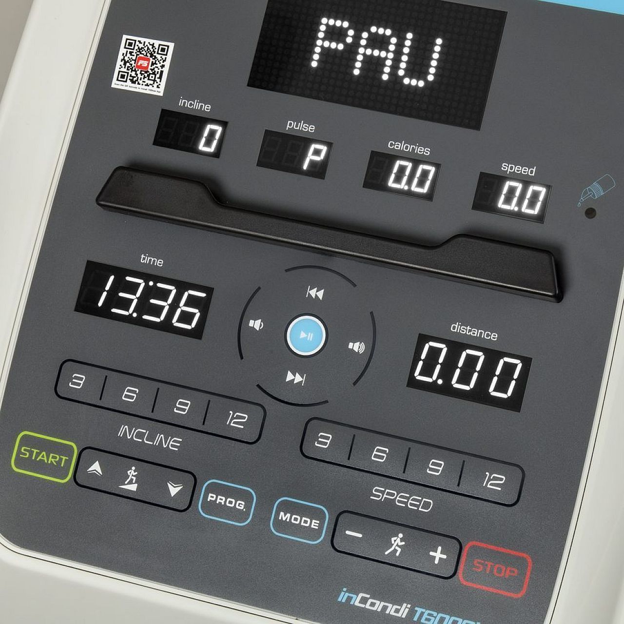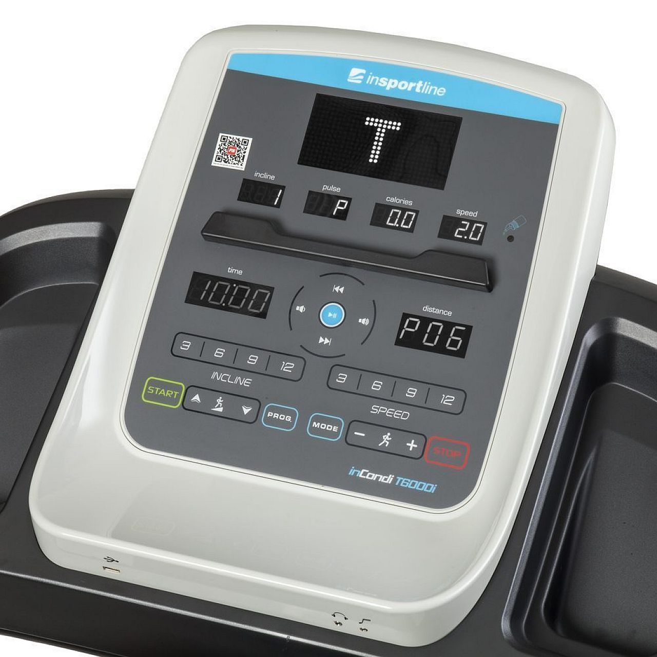 LCD-дисплей з підсвічуванням бігової доріжки T6000i відображає багато корисної інформації, таких як швидкість, час, відстань, пульс та витрачені калорії. До інших переваг inSPORTline inCondi T6000i можна віднести тиху роботу двигуна, датчики пульсу на ручках і максимальну швидкість 22 км/год. Міцна конструкція з полотном бігової доріжки розміром 163 x 55 см , вантажопідйомність 160 кг забезпечує високу стійкість під час вправ. Бігова доріжка inCondi T6000i оснащена системою звукоізоляції та спеціальною системою підвіски SAS, яка поглинає удари. Для забезпечення максимальної безпеки під час фізичних вправ бігова доріжка обладнана кнопкою аварійної зупинки, яка негайно зупиняє полотно бігової доріжки. Щоб отримати найточніші результати пройденого тренування, бігова доріжка оснащена сучасним комп'ютером. До послуг гостей 24 встановлених програм, 3 програми, 2 програми HRC і програма ручного налаштування, в якій можна налаштувати бігову доріжку під свої потреби. Панель бігової доріжки також містить тримач для пристроїв на електронні або книги.