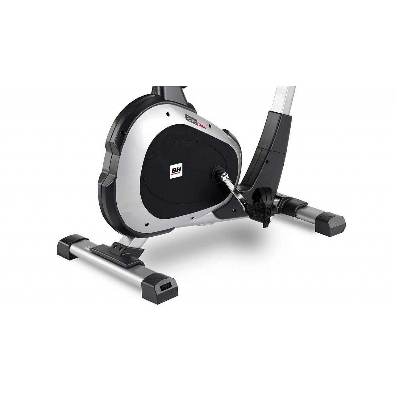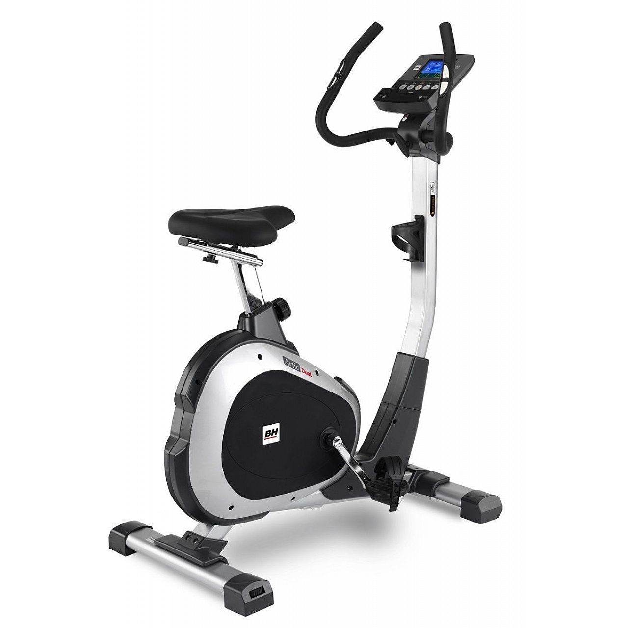 Велотренажер BH Fitness Artic Dual – відмінний варіант для всіх, хто шукає високоякісний домашній пристрій для кардіо-тренувань, який дозволить Вам постійно підтримувати себе у формі. Їзда на велотренажері може бути дуже різноманітною. Крім 10 програм тренування серед яких є, зокрема, випадкова програма (Random), 4 програми пульсу і ті, які можуть бути розроблені користувачем), виробник пропонує варіант покупки Dual Kit , який перетворить велотренажер на пристрій iConcept. Потім ви можете через планшет або смартфон отримати доступ до різних тренувальних програм. Для зручності користувача сидіння та кермо регулюються. На екрані дисплея відображаються дані, як пульс, швидкість та кількість витрачених калорій. Пульс вимірюється за допомогою сенсорних датчиків або за допомогою технології Bluetooth (опція).