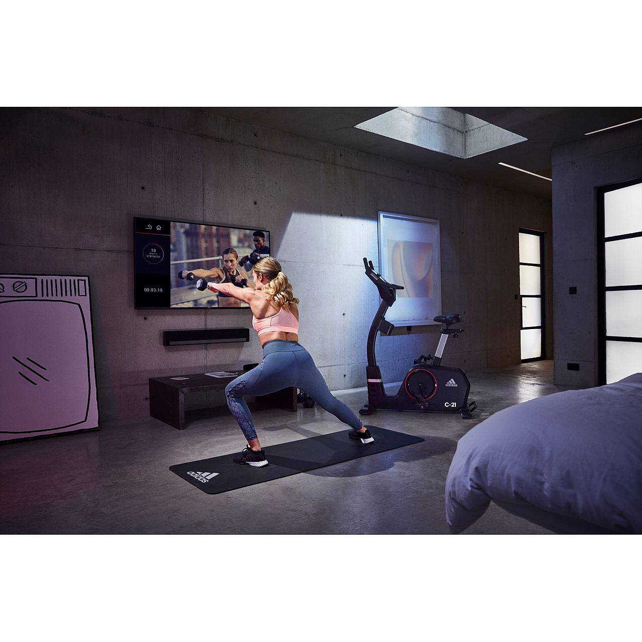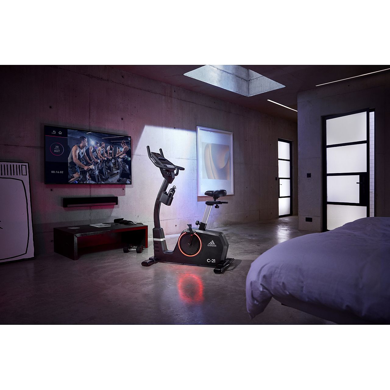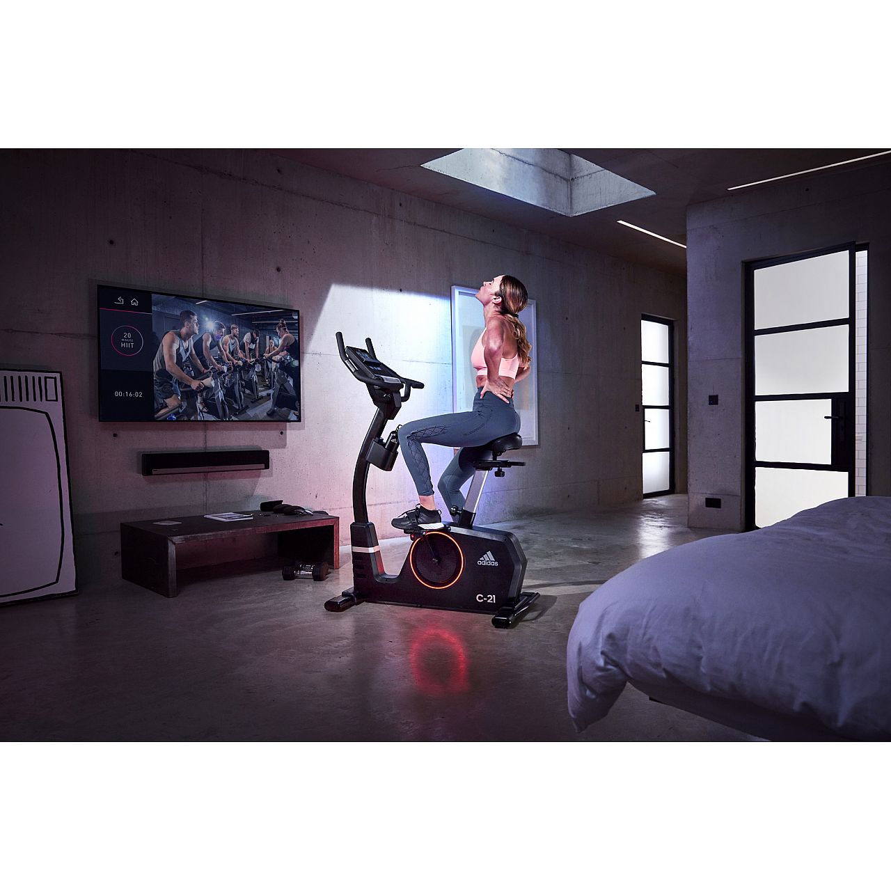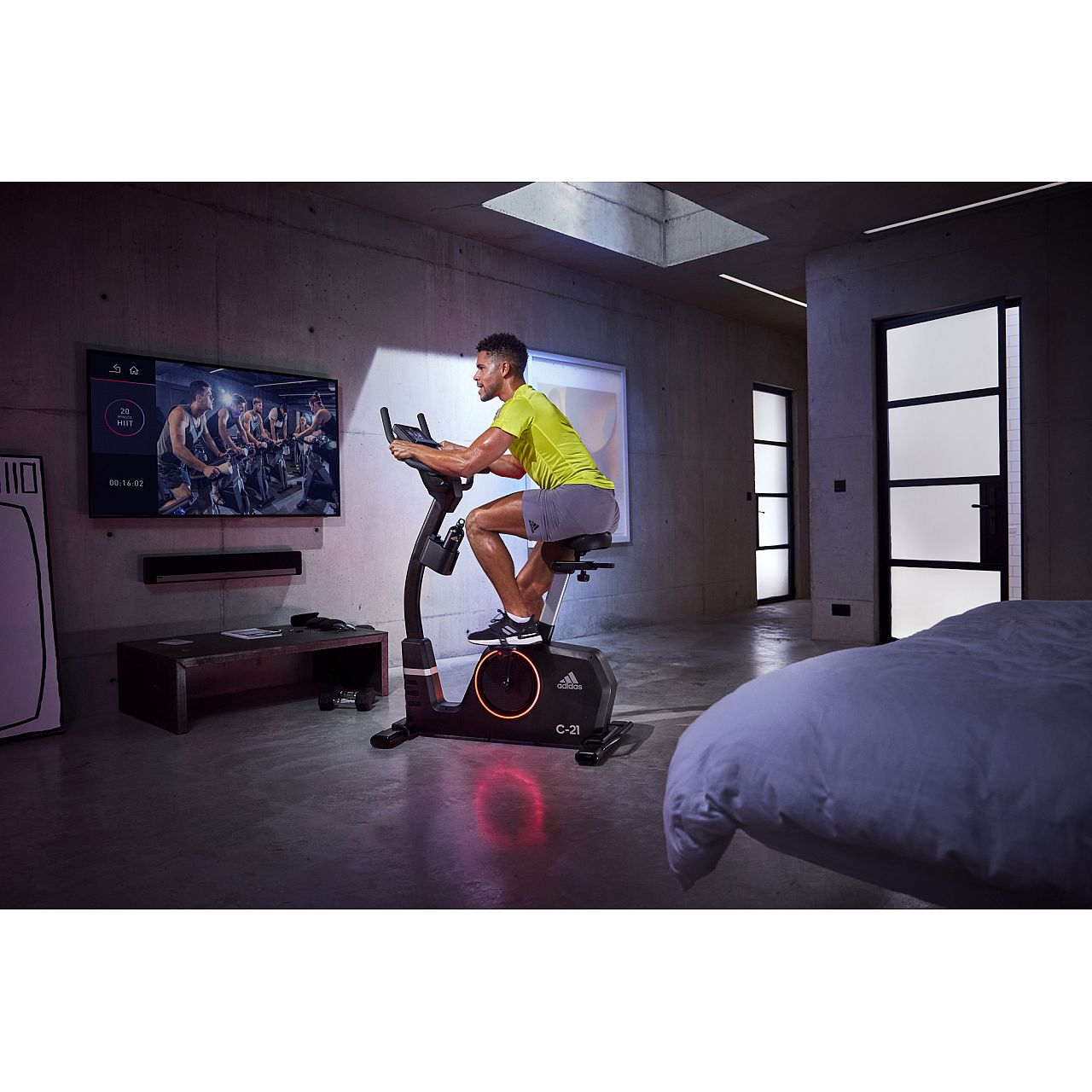 Adidas C-21, оснащений тримачем для планшета, вбудованими динаміками та можливістю підключення по Bluetooth, підключається до вашого телефону або планшета, дозволяючи вам тренуватися, слухаючи одночасно улюблені треки або переглядаючи нові фільми та бокс-сети. Поліпшіть свій режим тренувань, синхронізувавши C-21 із Zwift, захопливим онлайн-досвідом, створеним на базі глобальної спільноти велосипедистів. Також сумісний з Kinomap, дозволяючи брати участь у багатьох випробуваннях на тлі мальовничих відеороликів або навіть змагатися з друзями в онлайн режимі.
