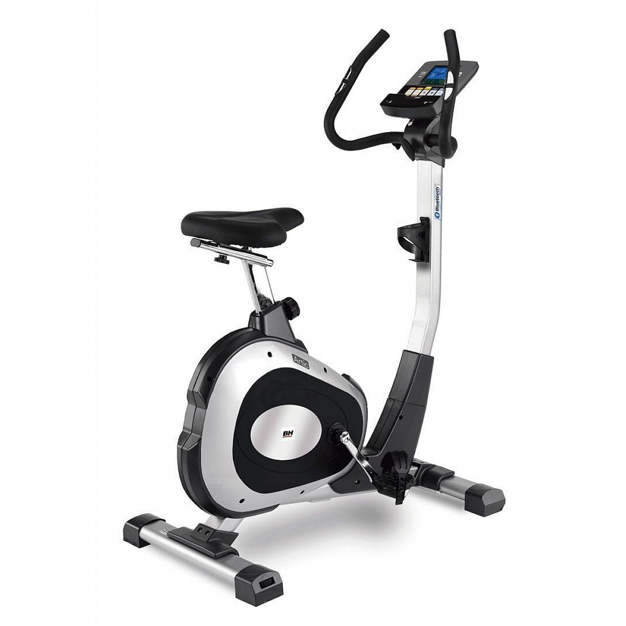 BH Fitness i.Artic bluetooth . Його управління з персональним дозволом дозволяє спротивитися в залежності від переваги її та рівня підготовки займаючогося. Регульована по вертикалі і горизонталі ергономічна сторона і регульоване кермо дозволили використовувати утройство для людей з різними фізичними даними. Спеціальна конструкція рами з глибоким входом легка на велотренажері. Педалі, що самовирівнюються та не складаються, з регульованими ременями для комфорту.