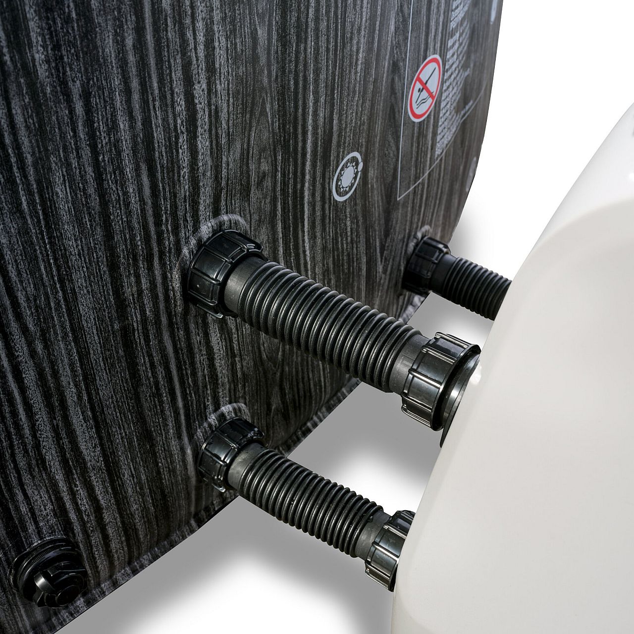 СПА Басейн надувний EXIT Deluxe обов'язково сподобається і захопить з першого погляду своїми контрастними кольорами - темно-сірий з візерунком текстури дерева зовні і світло-сірий - всередині. У цій гідромасажній ванні особливо міцні стіни з тришарового ПВХ і пінопластова основа, що забезпечує чудовий комфорт для сидіння. Крім того, потрібно зовсім небагато часу, щоб привести її в робочий стан - фільтруючий насос має функцію надування, яка наповнить басейн повітрям А якщо ви не хочете користуватися джакузі якийсь час? Ізолюючий чохол-накриття з запобіжним замком дозволяє легко закрити гідромасажну ванну і зберегти воду теплою.
