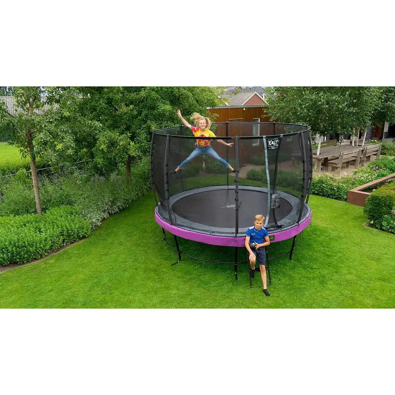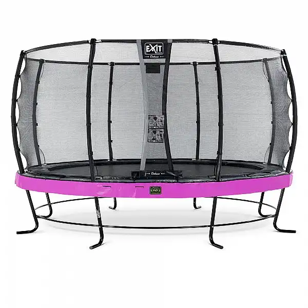 Батут EXIT Elegant Premium 427cm purple з сіткою безпеки Deluxe - це високоякісний круглий батут, продукт найвищого класу, кращий з серії батутів Elegant із захистом на пружинах сірого кольору і фіолетовою спідницею. Він безпечний, красивий, дуже зручний, має супер міцну раму і легко збирається.
