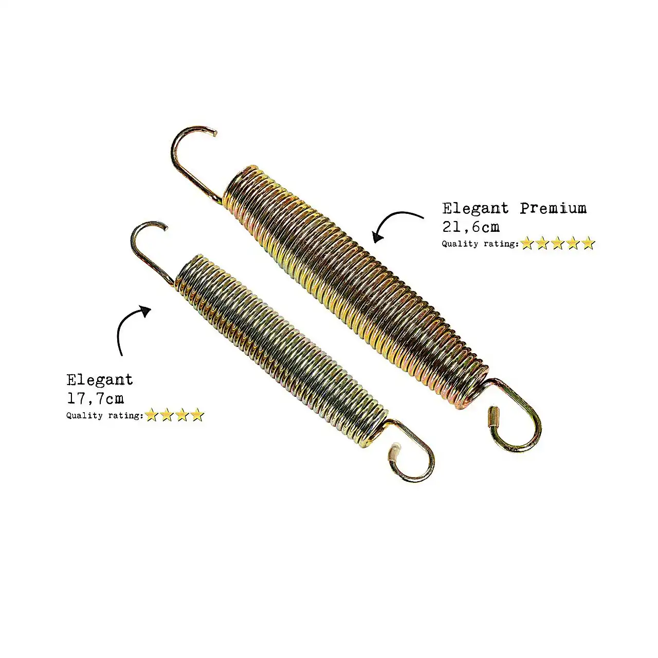 Рама спочатку оцинковується, а потім покривається фарбою порошковим методом, що не залишає ні єдиного шансу для іржі. Подовжені пружини 17.7 см двоконусної форми, що гарантує відмінний відскік і м'яке приземлення.