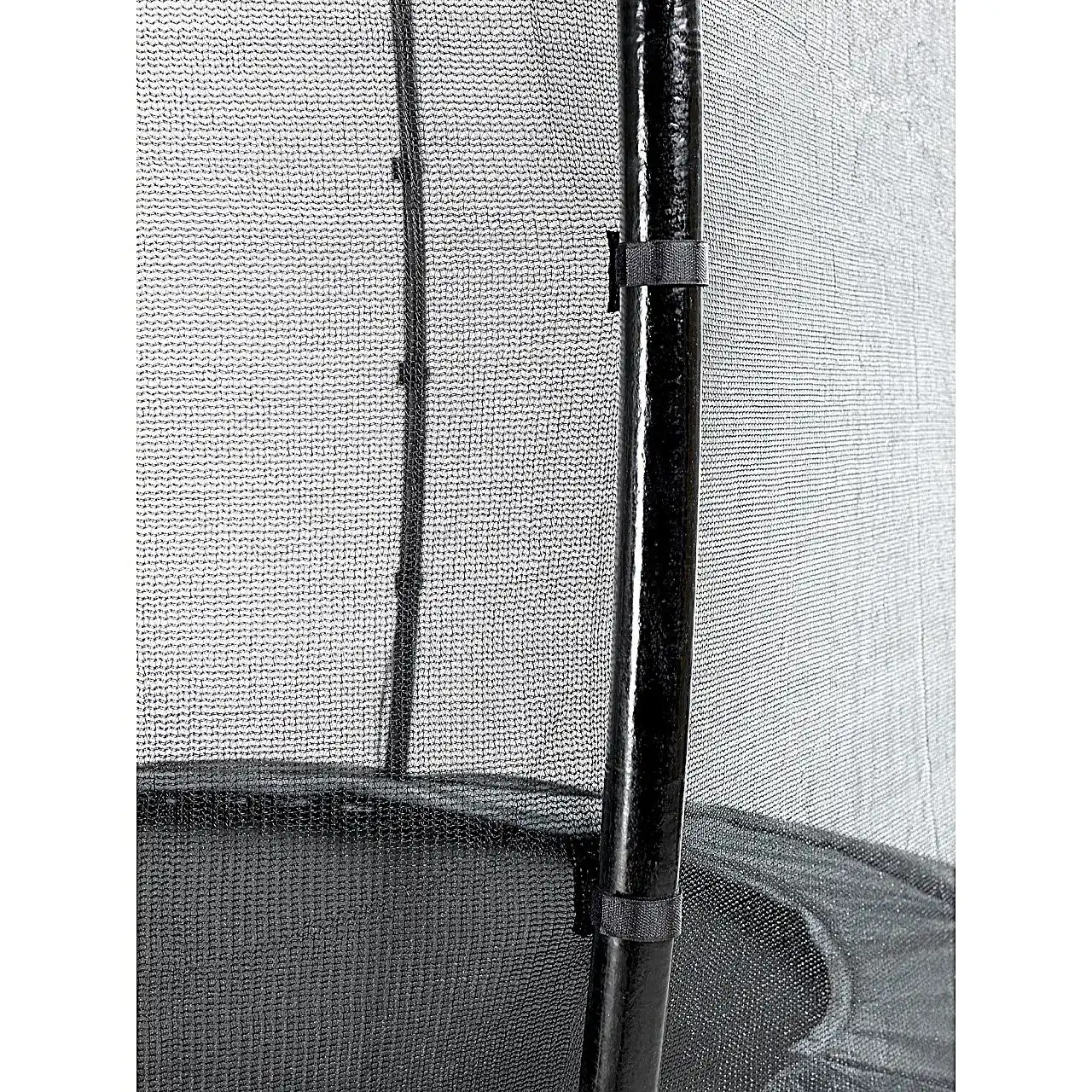 Каркас батута EXIT Elegant дуже міцний і отже стійкий і безпечний. Запатентована рама з унікальними L- образними ніжками була розроблена спеціально, щоб уникнути падіння або нахилу. Навіть якщо діти підстрибують дуже високо і пустують, батут завжди залишатиметься нерухомим. Компанія EXIT Toys називає це "рамою максимальної стабільності" (USF)! Крім того, батут Елегант є яскравим прикладом того, що безпека і дизайн йдуть рука в руку, до того ж виріб виглядає дорого і красиво.