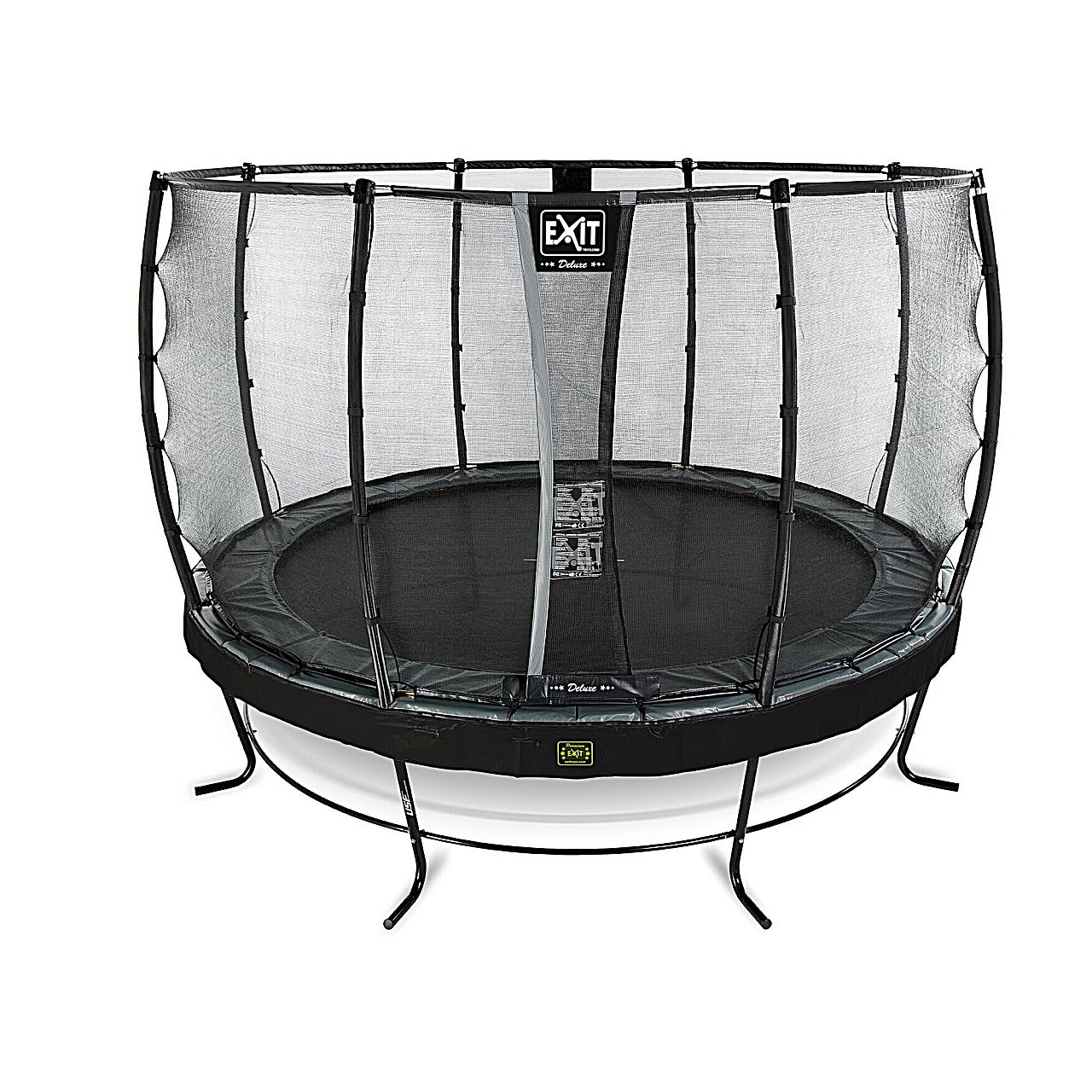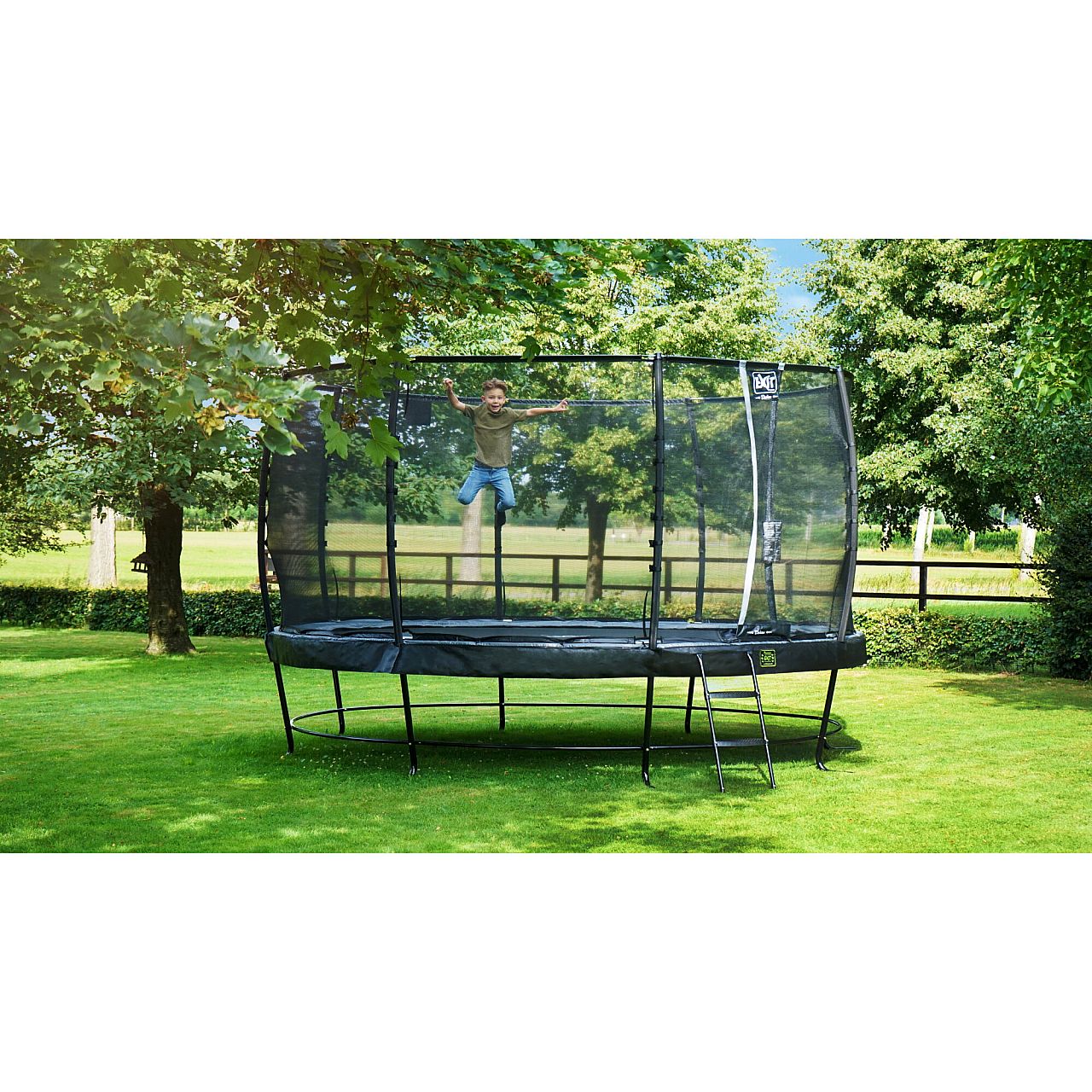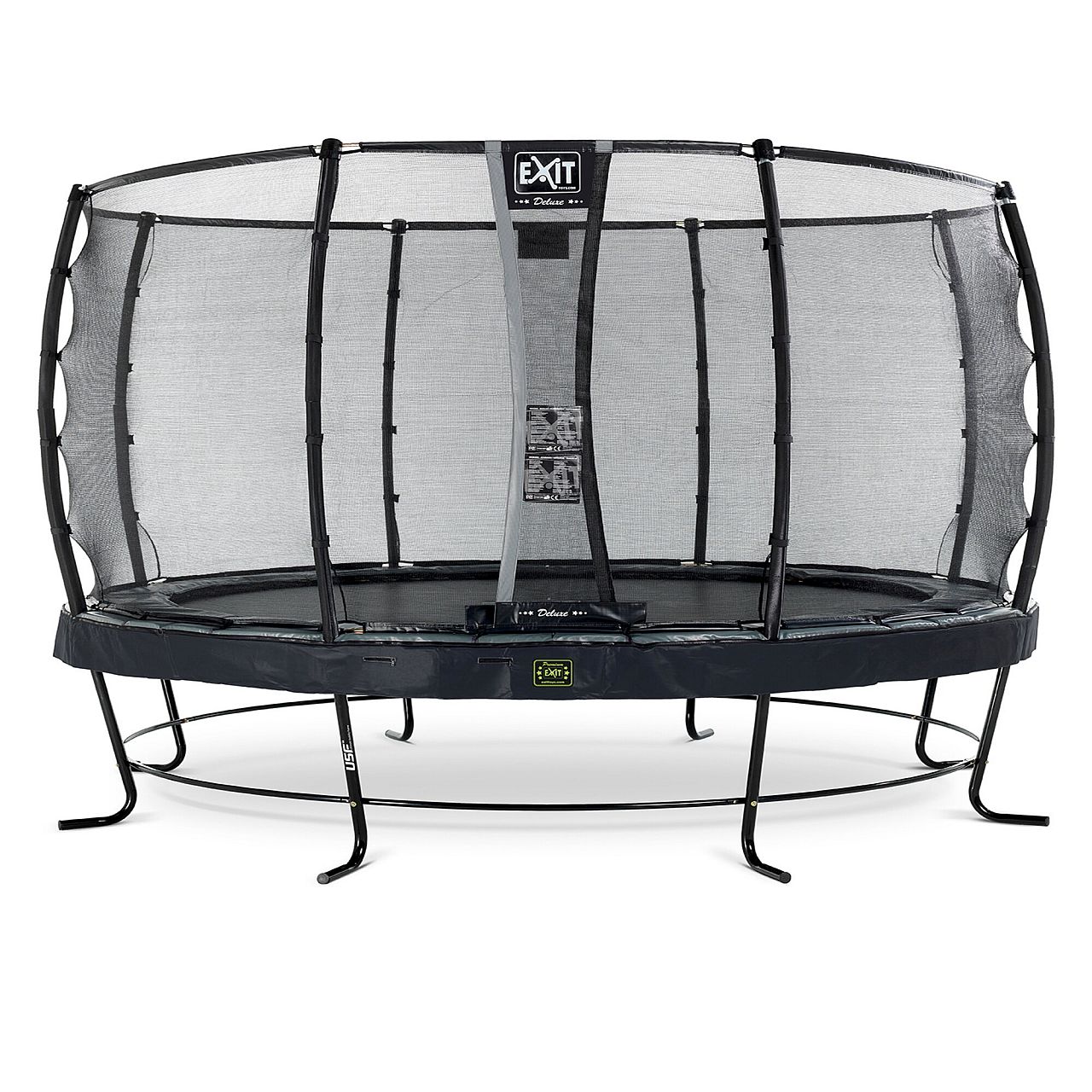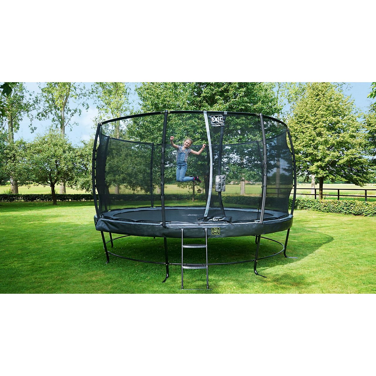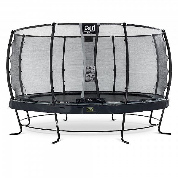 Батут EXIT Elegant Premium 427cm black з сіткою безпеки Deluxe - це високоякісний круглий батут, продукт найвищого класу, кращий з серії батутів Elegant з захистом на пружинах сірого кольору і чорною спідницею. Він безпечний, красивий, дуже зручний, має супер міцну раму і легко збирається.