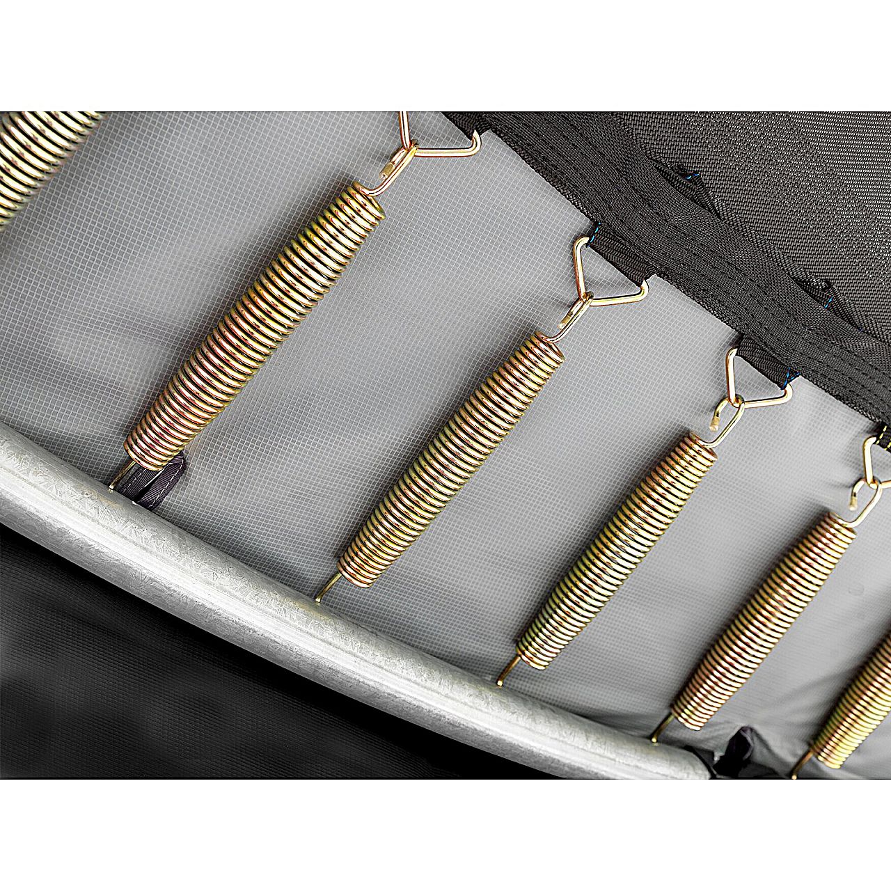 Якщо ви вибираєте страхувальну сітку Deluxe, ви обираєте не тільки оптимальну безпеку, але і високу якість. Кільця з скловолокна зверху і знизу завжди тримають сітку ідеально натягнутою і щільною. Захисна сітка має високоякісну обробку, помітну дуже товсту піну навколо стійок, на які натягнута сітка.
