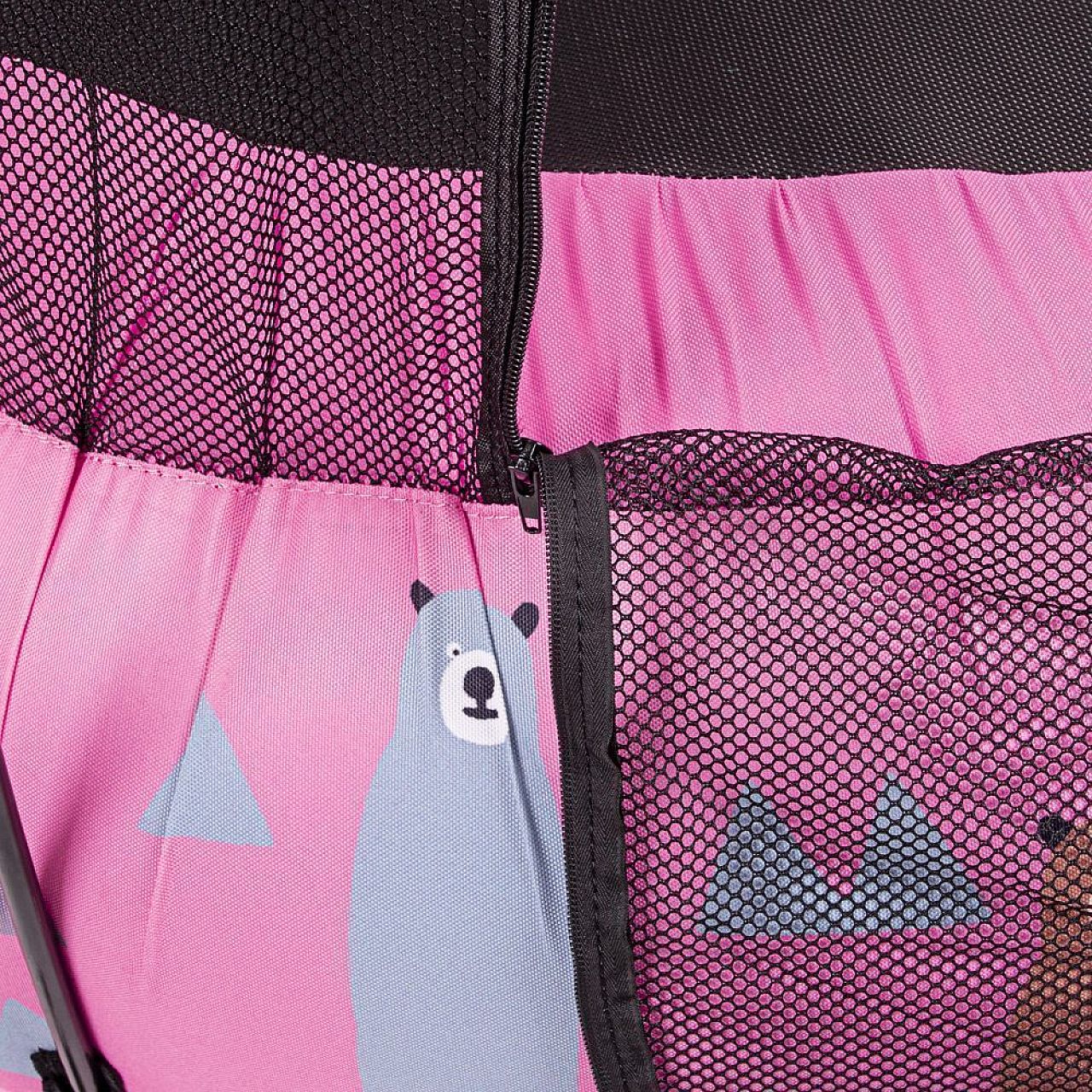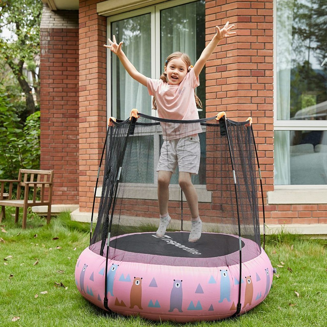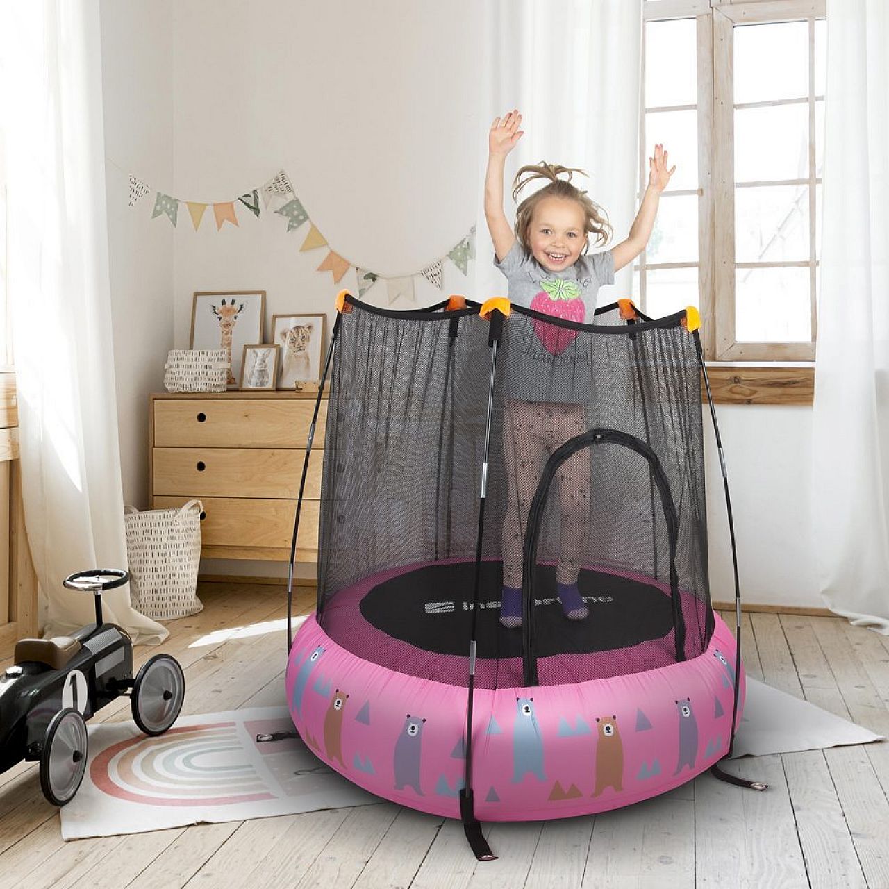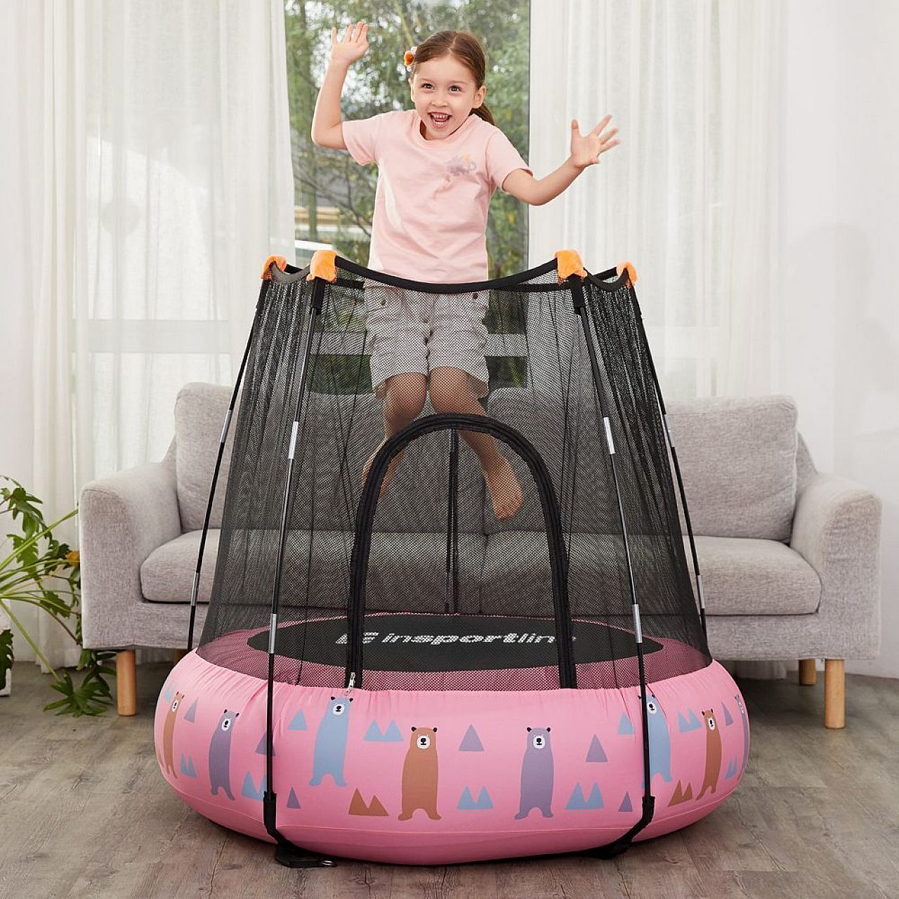 Батут поставляється із захисною сіткою висотою 75 см , 5 складними опорами сітки з 5 м'якими покриттями у верхній частині сітки, що забезпечують додаткову безпеку, та 5 міцними кілками, які дозволяють закріпити батут на землі при використанні на відкритому повітрі. Ваше маля закохається в барвистий надувний дитячий батут inSPORTline Nufino.