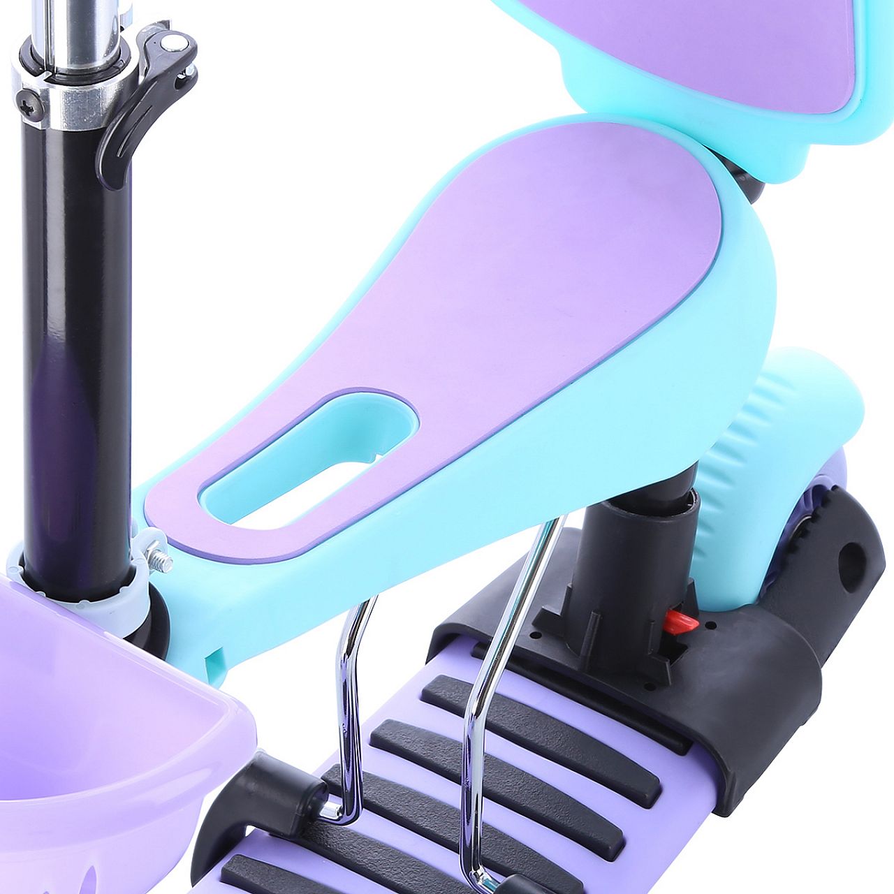 Модель оснащена сидінням, яке регулюється в трьох рівнях. Одягаючи їх, ми отримуємо ходунки для найменших користувачів. Після від’єднання сидіння транспортний засіб перетворюється на самокат, а після від’єднання керма – у скейтборд.