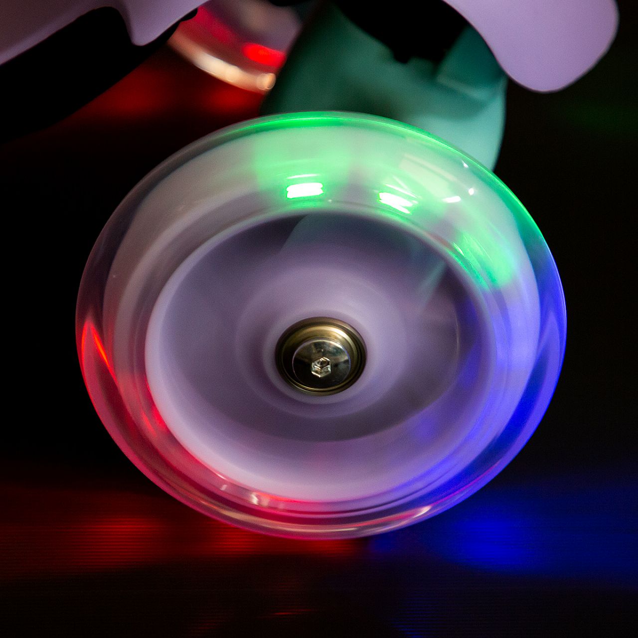 Передні колеса поворотні і мають вбудовані світлодіодні діоди, що робить дитину більш помітною під час їзди.