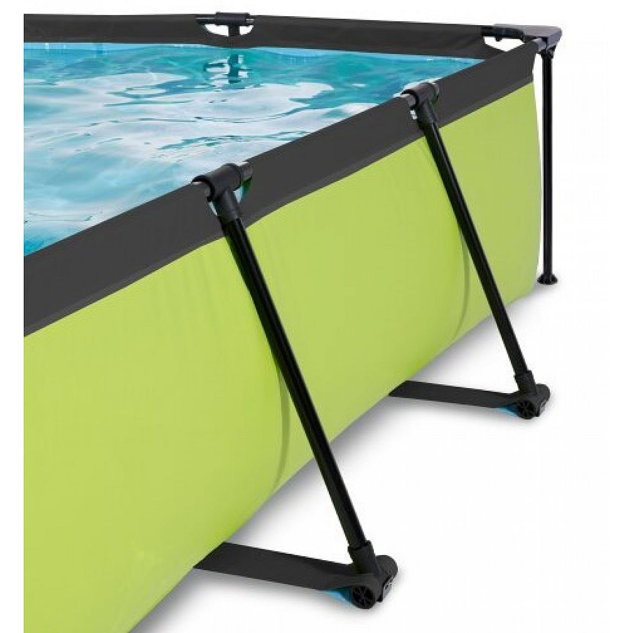 Виріб виглядає сучасно і стильно, із зовнішнього боку - тканина із забарвленням "лайм", що робить його розміщення в саду, на дачі або у дворі частки будинку особливо привабливим. Усередині - покриття синього кольору, що створює відчуття свіжості і прохолоди. Басейн EXIT оснащений трьох кульовими стінами, виготовленими з ПВХ і поліестеру.