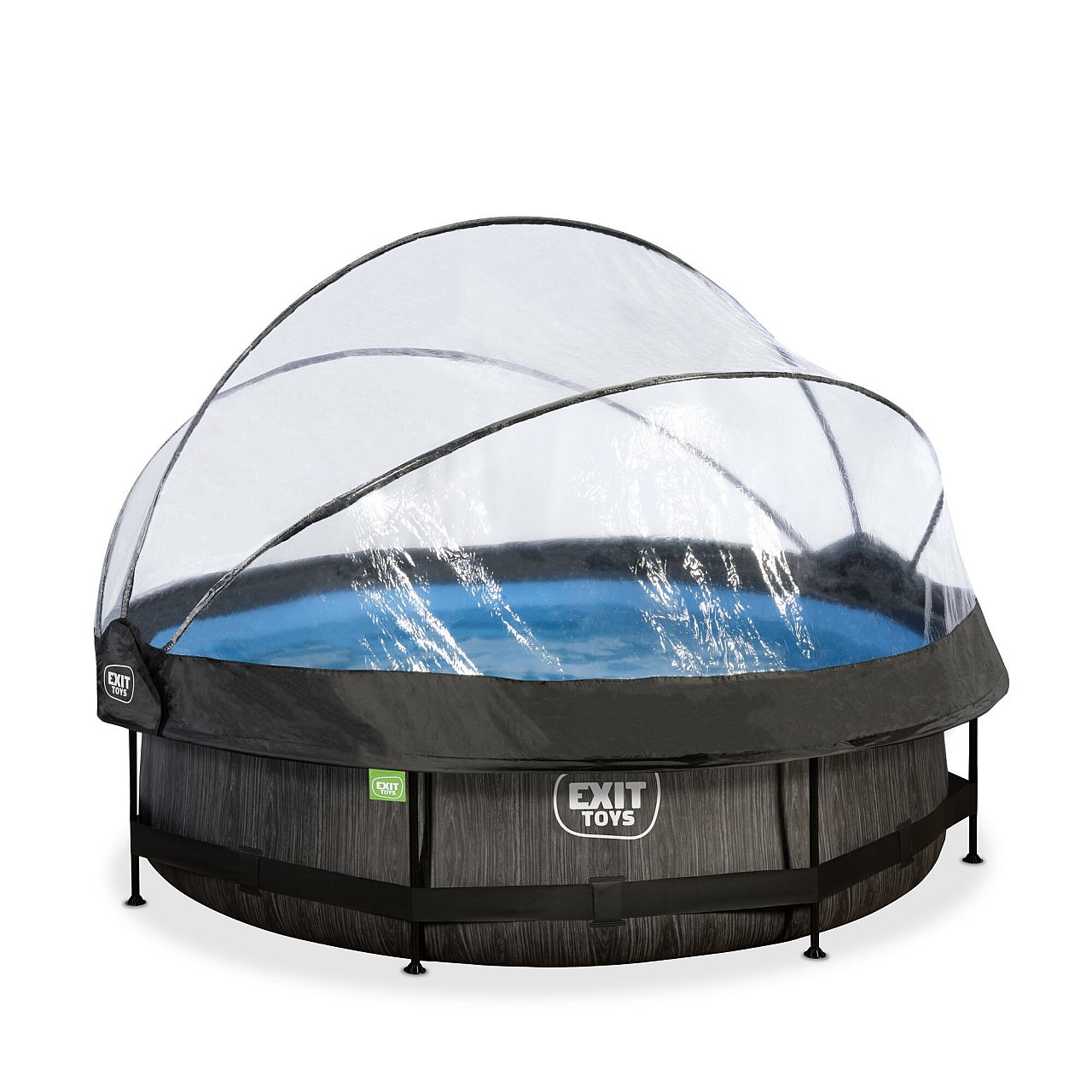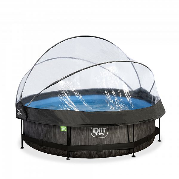 Басейн круглий з куполом EXIT камінь 300 х 76 см виглядає лаконічно і елегантно. З зовнішньої сторони - тканина з візерунком у вигляді дерев'яної стіни, що зробить його розміщення в саду, на дачі або у дворі будинку особливо естетичним.