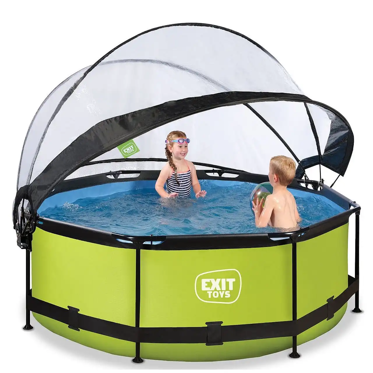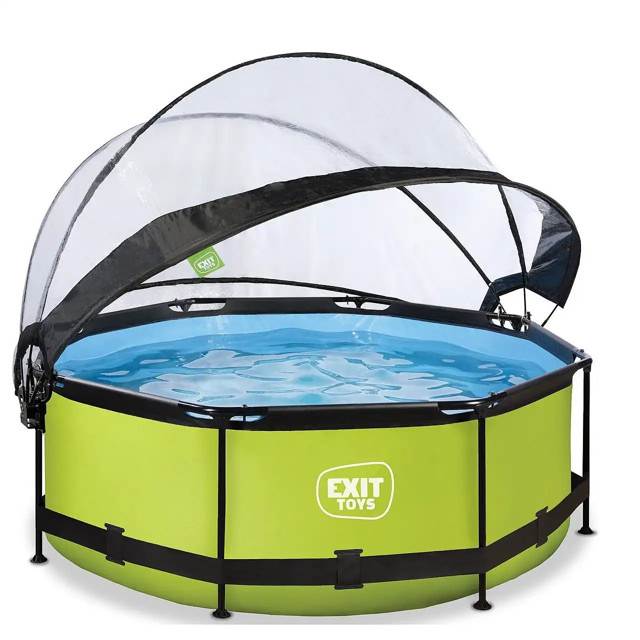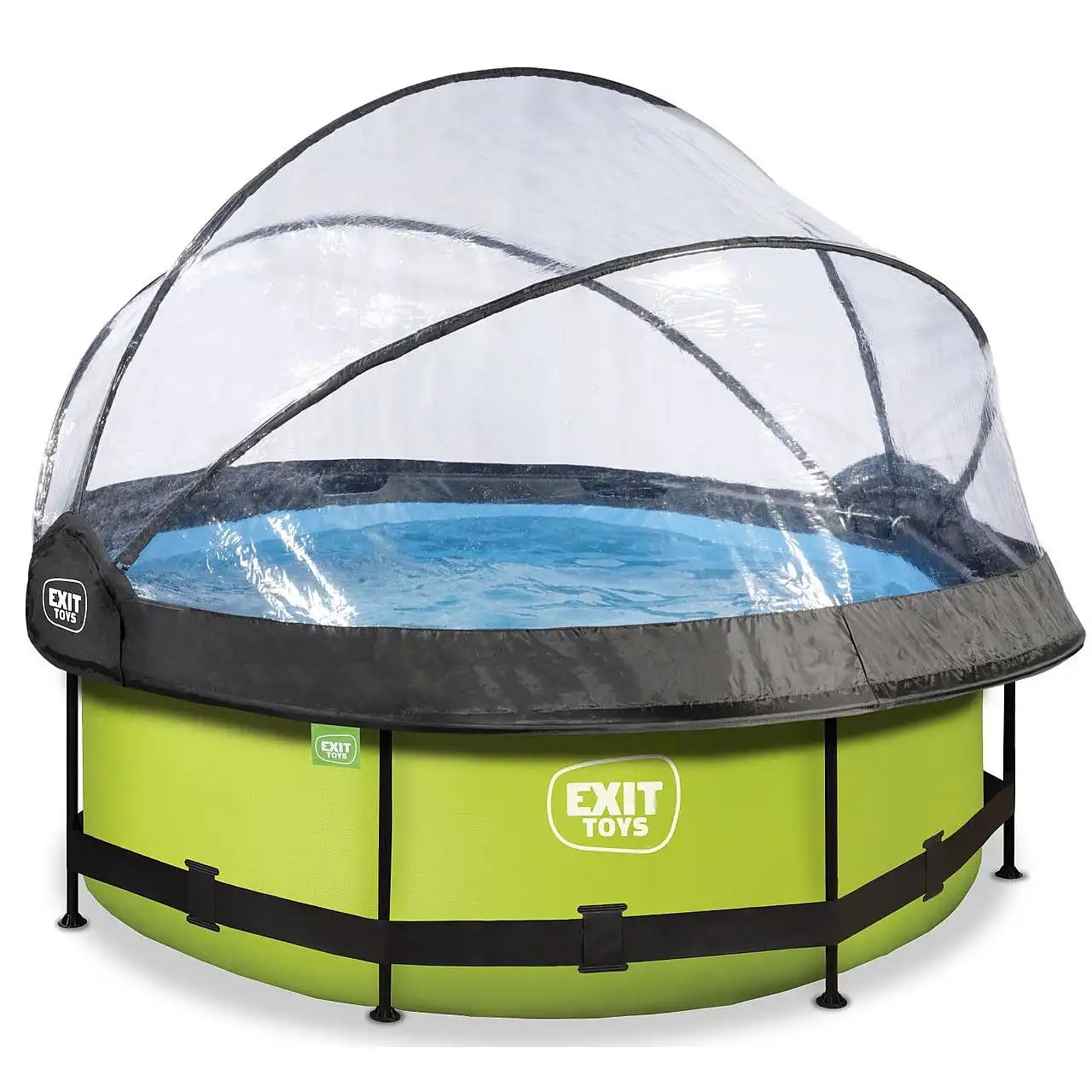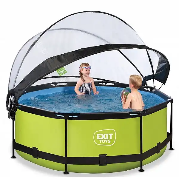 Басейн круглий з куполом EXIT "лайм" 244 х 76 см компактний каркасний басейн круглої форми, який виглядає лаконічно і елегантно. Із зовнішнього боку - тканина із забарвленням в кольорі "лайм", що зробить його розміщення в саду, на дачі або у дворі будинку особливо красивим.
