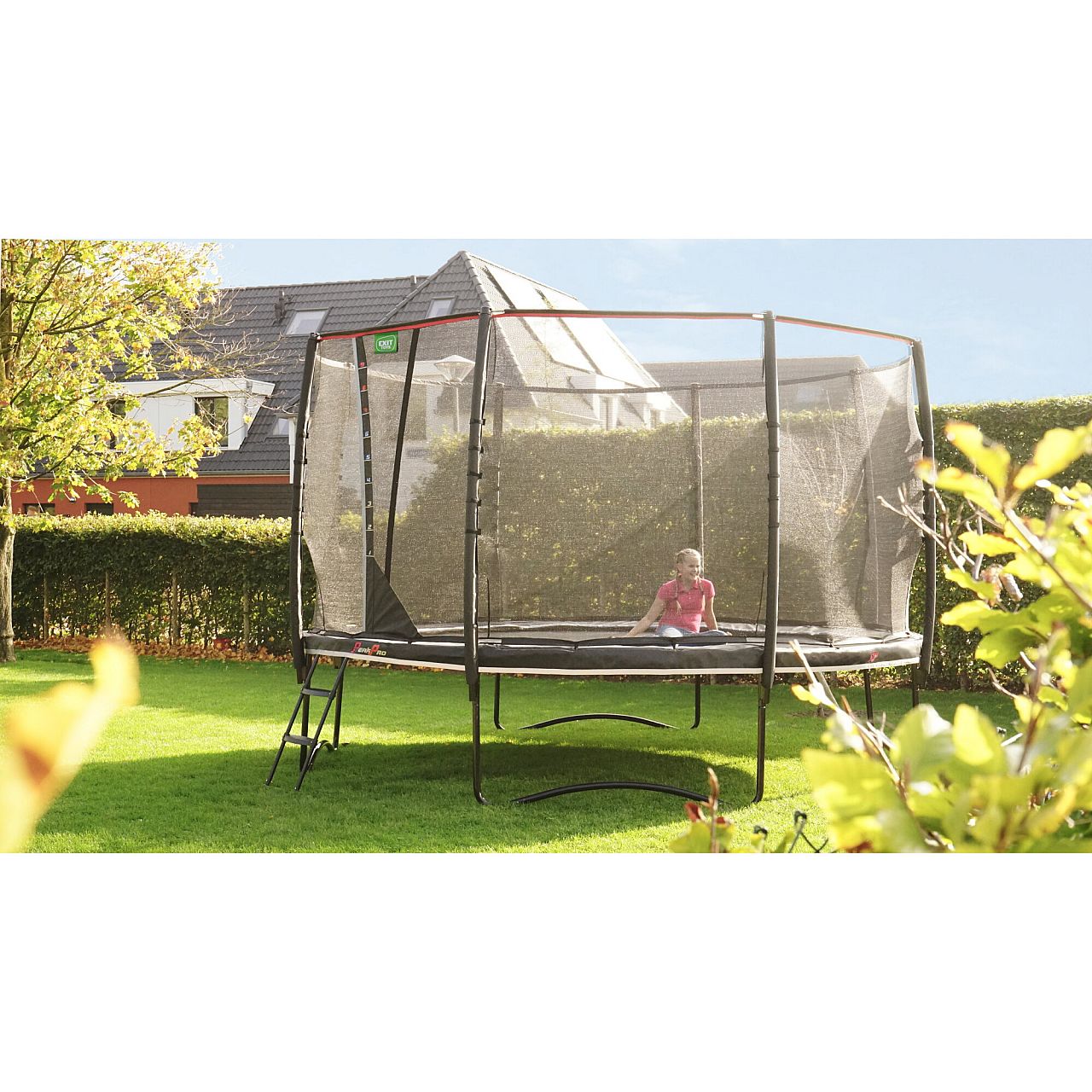 Батути PeakPro підходять для дітей і дорослих, які вже є досвідченими стрибунами. Великі й гнучкі пружини EXIT PeakPro мають довжину 25 сантиметрів, що дозволяє легше виконувати стрибки у висоту. Вдосконалюйте свої акробатичні навички на просторому прыжковом покритті і станьте справжнім профі. Захисна сітка, що входить в комплект батута, має шкалу вимірювання стрибка, яка показує всім, наскільки високо ви можете стрибнути. Киньте виклик своїм друзям, щоб дізнатися, хто першим досягне позначки "дев'ять" за шкалою