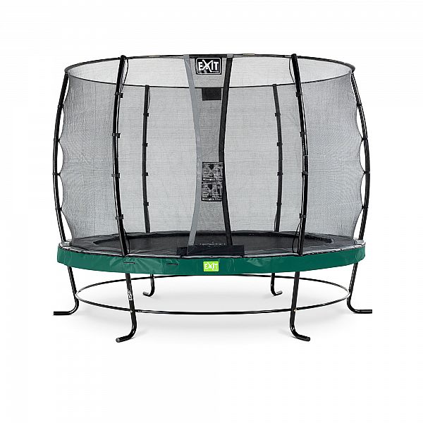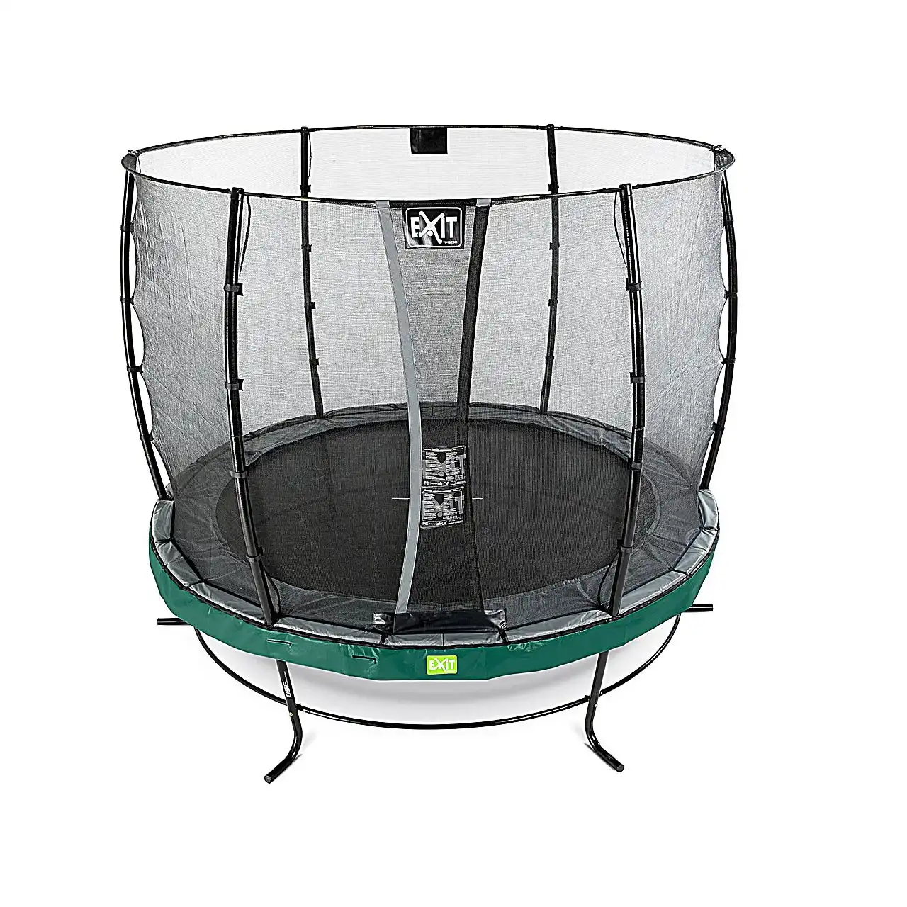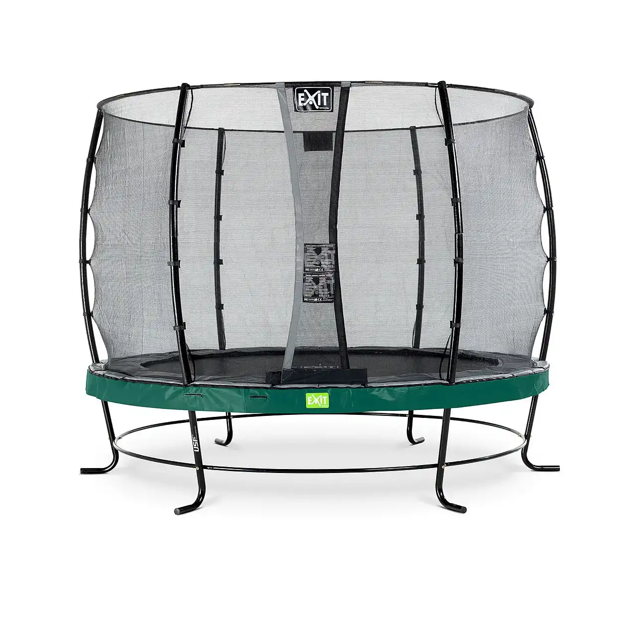 Батут c захисною сіткою EXIT Elegant 305 cm green - це високоякісний круглий батут батутів Elegant із захистом на пружинах сірого кольору і зеленою спідницею. Він безпечний, красивий, дуже зручний, має супер міцну раму і легко збирається.