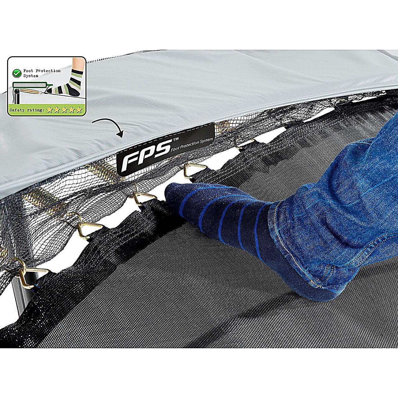 Захисна накладка на пружини міцна і має систему захисту ніг (FPS), яка була спеціально розроблена компанією EXIT Toys для відвертання попадання ваших ніг в пружини при підстрибуванні.