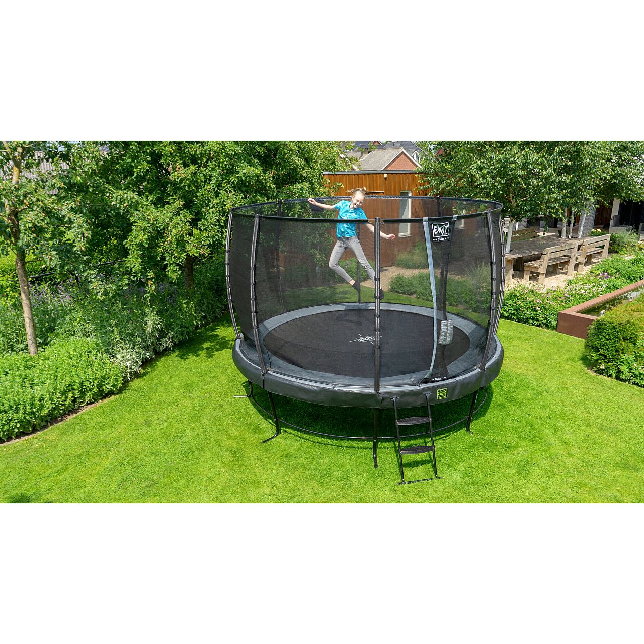 Батут c захисною сіткою EXIT Elegant 366 cm black - це високоякісний круглий батут батутів Elegant із захистом на пружинах сірого кольору і чорною спідницею. Він безпечний, красивий, дуже зручний, має супер міцну раму і легко збирається.