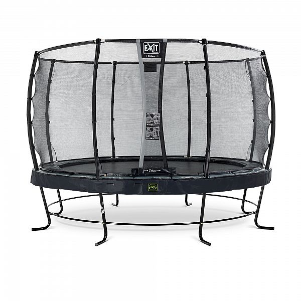 Батут EXIT Elegant Premium 366 cm black з сіткою безпеки Deluxe для дітей і дорослих - це високоякісний круглий батут, продукт найвищого класу, кращий з серії батутів Elegant з захистом на пружинах сірого кольору і чорною спідницею. Він безпечний, красивий, дуже зручний, має супер міцну раму і легко збирається.
