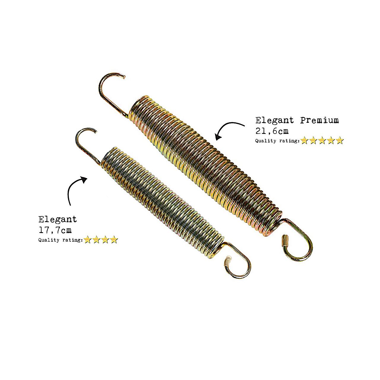 Каркас батута EXIT Elegant дуже міцний і отже стійкий і безпечний. Запатентована рама з унікальними L-образними ніжками була розроблена спеціально, щоб уникнути падіння або нахилу. Навіть якщо діти підстрибують дуже високо і пустують, батут завжди буде залишатися нерухомим. Компанія EXIT Toys називає це «рамою максимальної стабільності» (USF)! Крім того, батут Елегант є яскравим прикладом того, що безпека і дизайн йдуть рука об руку, до того ж виріб виглядає статусно і красиво. Рама спочатку оцинковується, а потім покривається фарбою порошковим методом, що не залишає жодного шансу для іржі. Подовжені пружини 21.6 см двухконусной форми, що гарантує відмінний відскік і м'яке приземлення