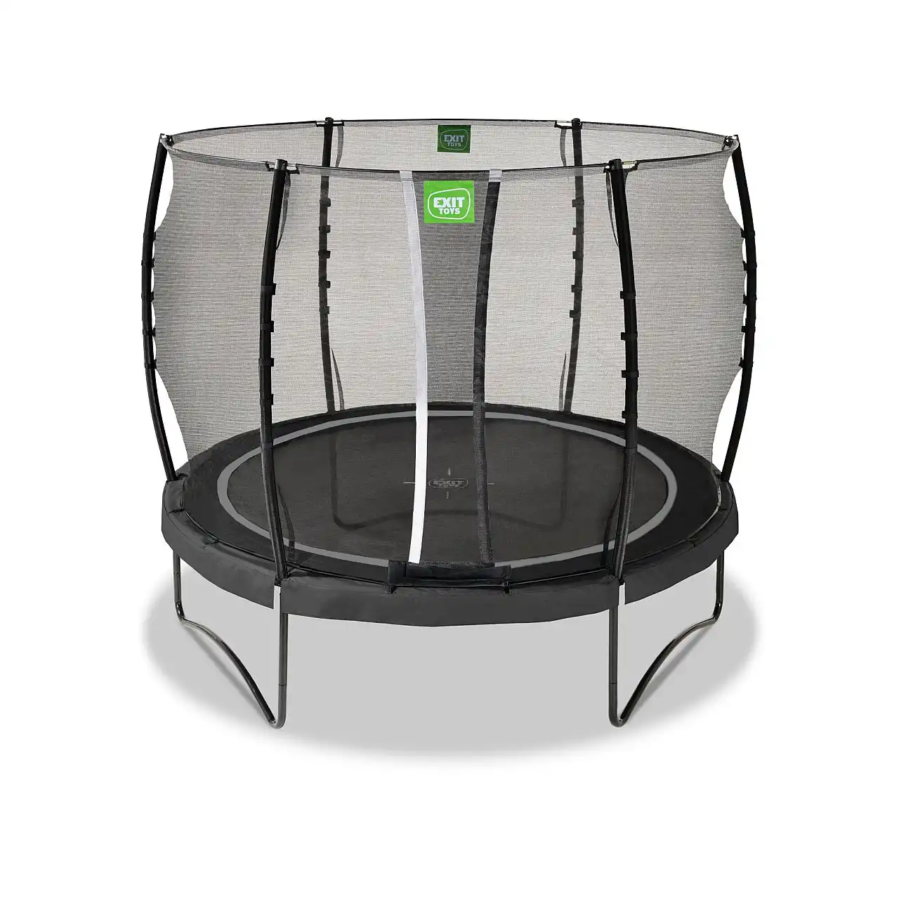 Батут Exit Allure Classic 305 см чорний - це компактний батут круглої форми з чорною накидкою на пружини, чорною спідницею і захисною сіткою. Класичні W- образні ніжки, оцинкована рама з порошковим покриттям і подвійні конічні пружини роблять цей батут міцним, стійким і довговічним у використанні.