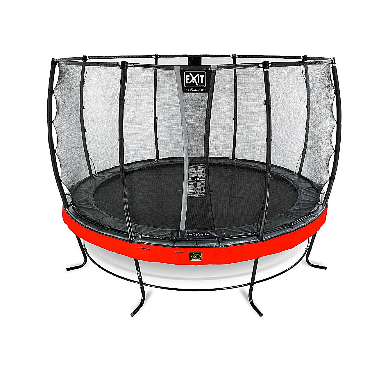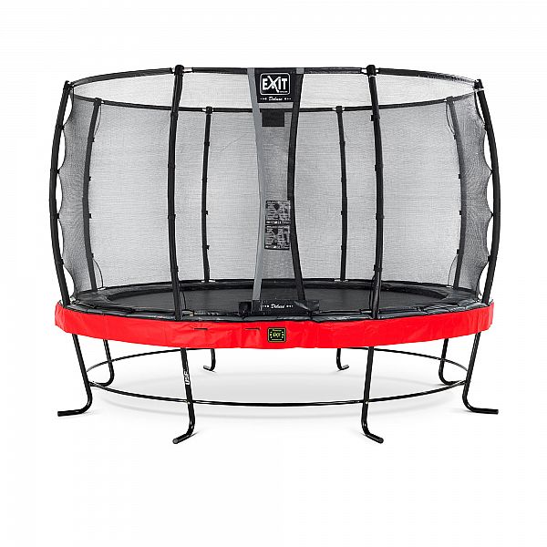 Батут EXIT Elegant Premium 366 cm red з сіткою безпеки Deluxe для дітей і дорослих - це високоякісний круглий батут, продукт найвищого класу, кращий з серії батутів Elegant з захистом на пружинах сірого кольору і сірою спідницею. Він безпечний, красивий, дуже зручний, має супер міцну раму і легко збирається.