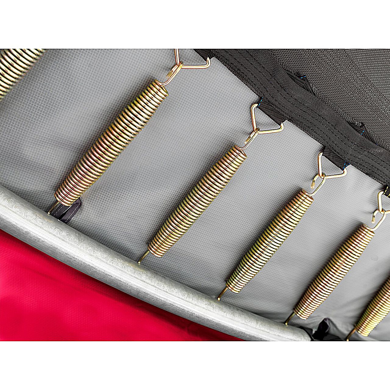 Якщо ви вибираєте страхувальну сітку Deluxe, ви обираєте не тільки оптимальну безпеку, але і високу якість. Кільця з скловолокна зверху і знизу завжди тримають сітку ідеально натягнутою і щільною. Захисна сітка має високоякісну обробку, помітну дуже товсту піну навколо стійок, на які натягнута сітка.
