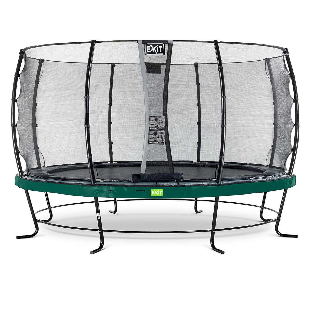 Батут EXIT Elegant Premium 427cm green із захисною сіткою стандарт (Нідерланди) з прекрасною ошатною спідницею зеленого кольору - море радості, позитиву і гарного настрою вашому будинку або саду.