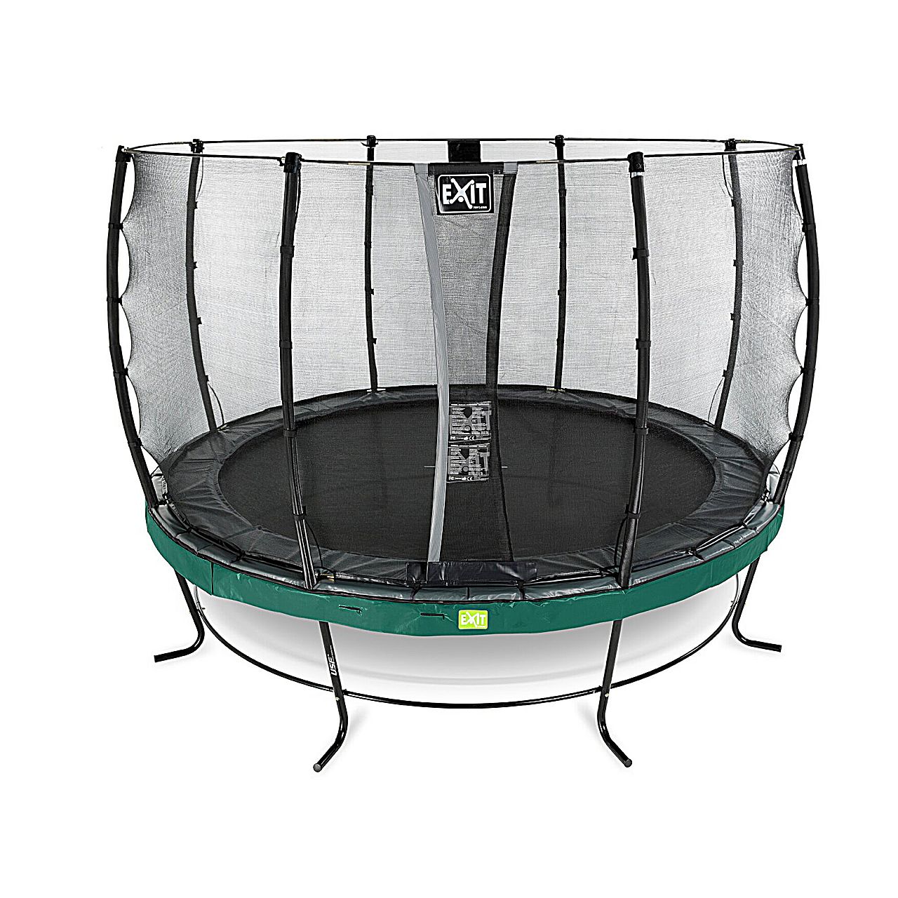 EXIT Elegant - преміальні батути найвищої якості не тільки красиві, але і довговічні. Рама спочатку гальванізується, а потім покривається фарбою порошковим методом. Подовжені пружини двуконической форми мають довжину 21,6 см, що гарантує відмінний відскік і м'яке приземлення.