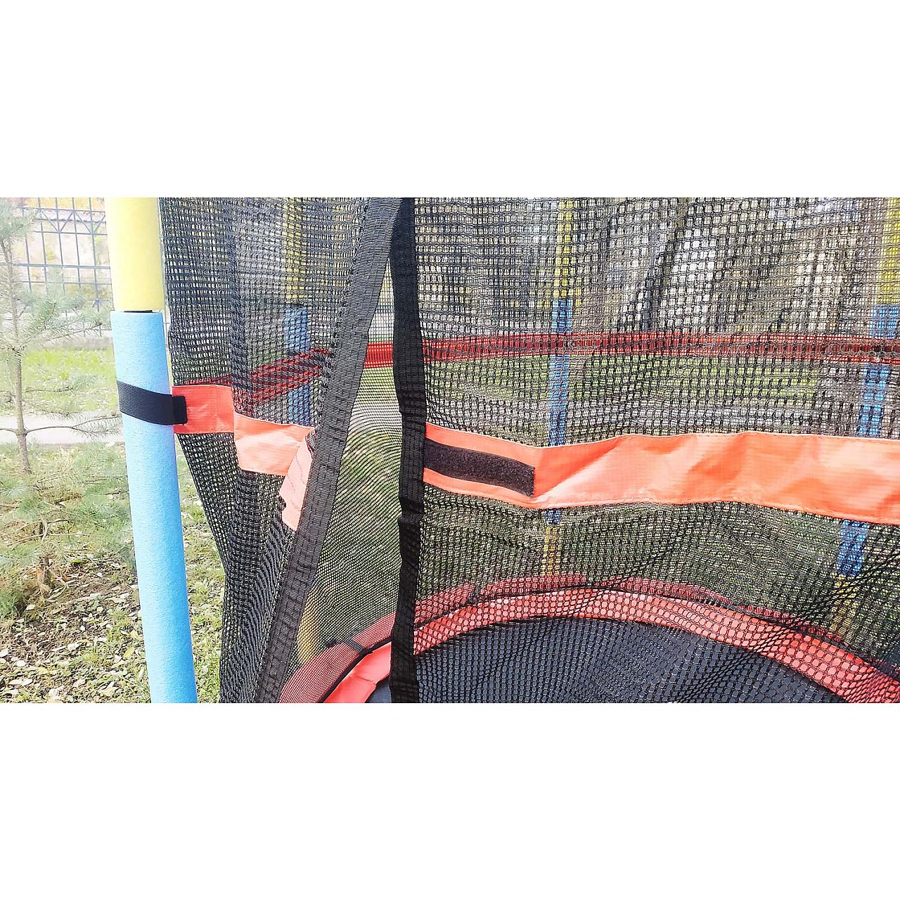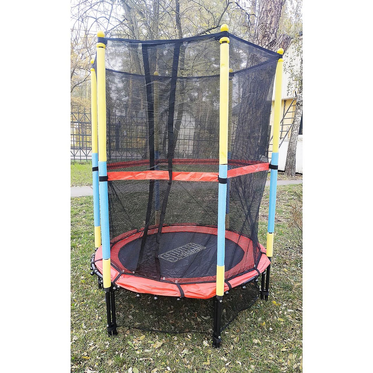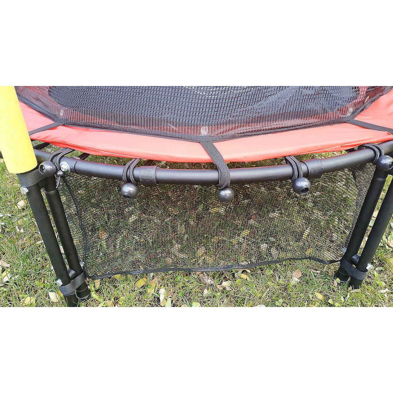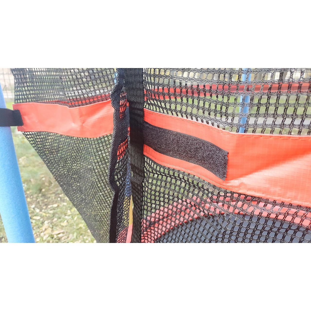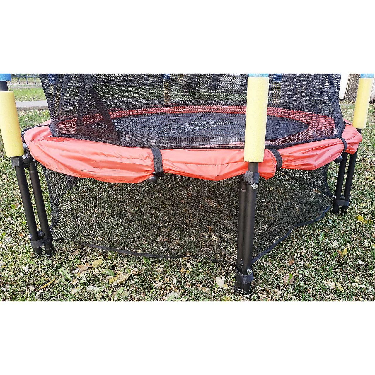 Конструкція батута завдяки використанню гумової мотузки закрита міцним чохлом з PVC та захисною огороджувальною сіткою, яка тримається на стійках, закритих у спінений поліетилен, зробить тренування дитини на батуті безпечними та комфортними. Для більшої безпеки простір під батутом перекрито спеціальною сіткою.