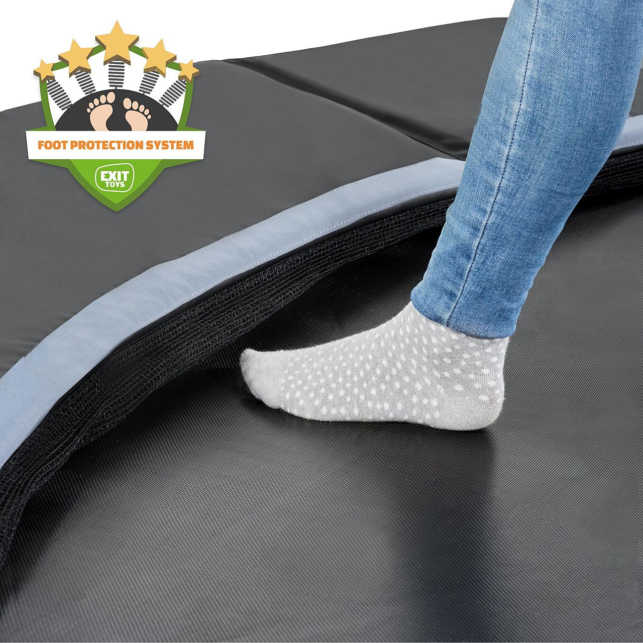 Відкрийте для себе фантастичний комфорт стрибків на спортивному батуті EXIT Dynamic. Стрибуни з великим досвідом без особливих зусиль підвищать свою майстерність до ще більш високого рівня, адже цей батут має подвійні конічні пружини завдовжки 25 см. Як результат, можливість мати понад високий відскік і тривалі динамічні навантаження. Проте, батут залишається нерухомим на місці під час найвіртуозніших стрибків, оскільки верхня труба рами має товщину 42 мм.