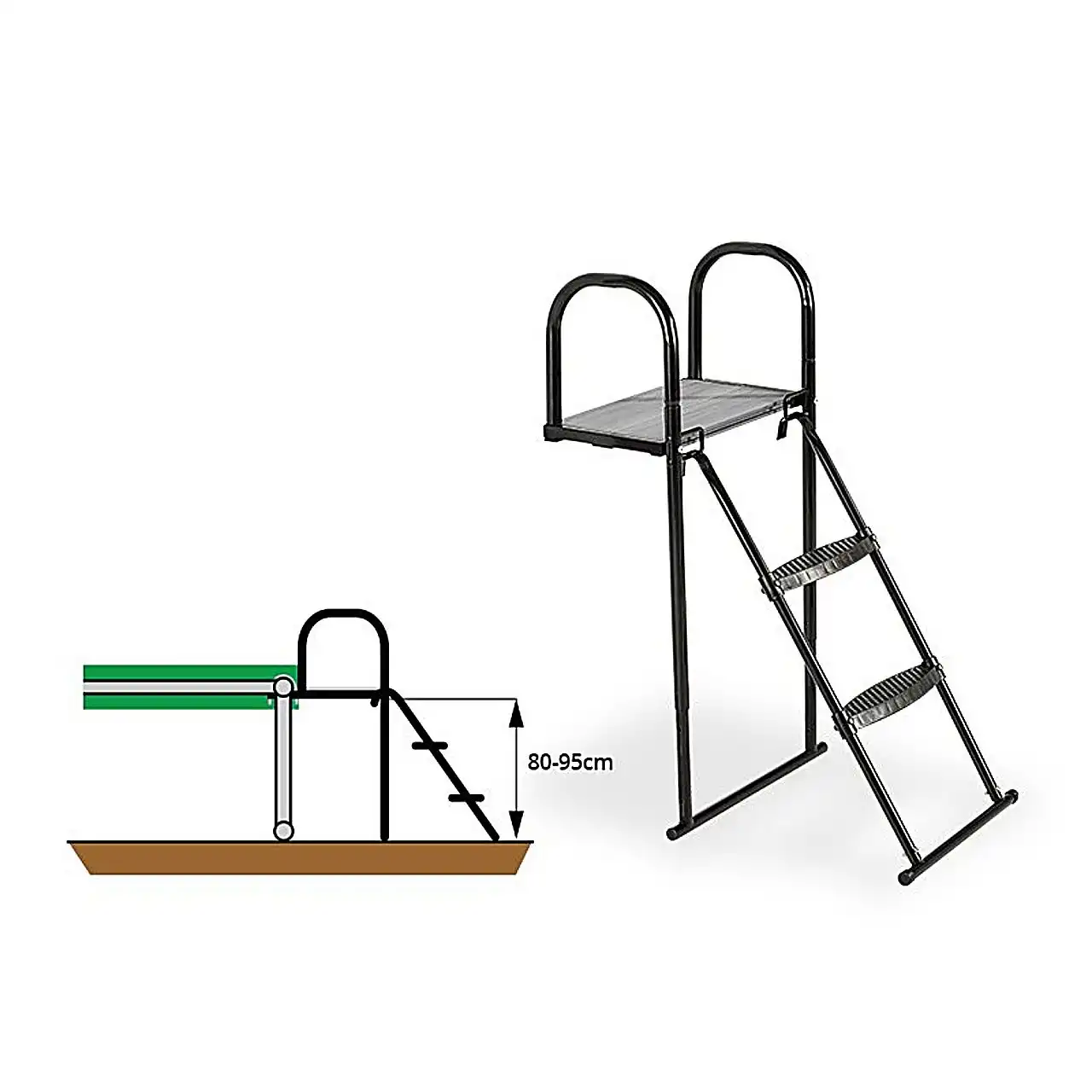 Сходи для батутів EXIT з платформою на висоту рами 80-95см - відмінний аксесуар для безпечного підйому на батут з ніжками. Платформа прикріпляється до батута, а сходи кріпляться до платформи, що забезпечує легкий і комфортний підйом на батут.