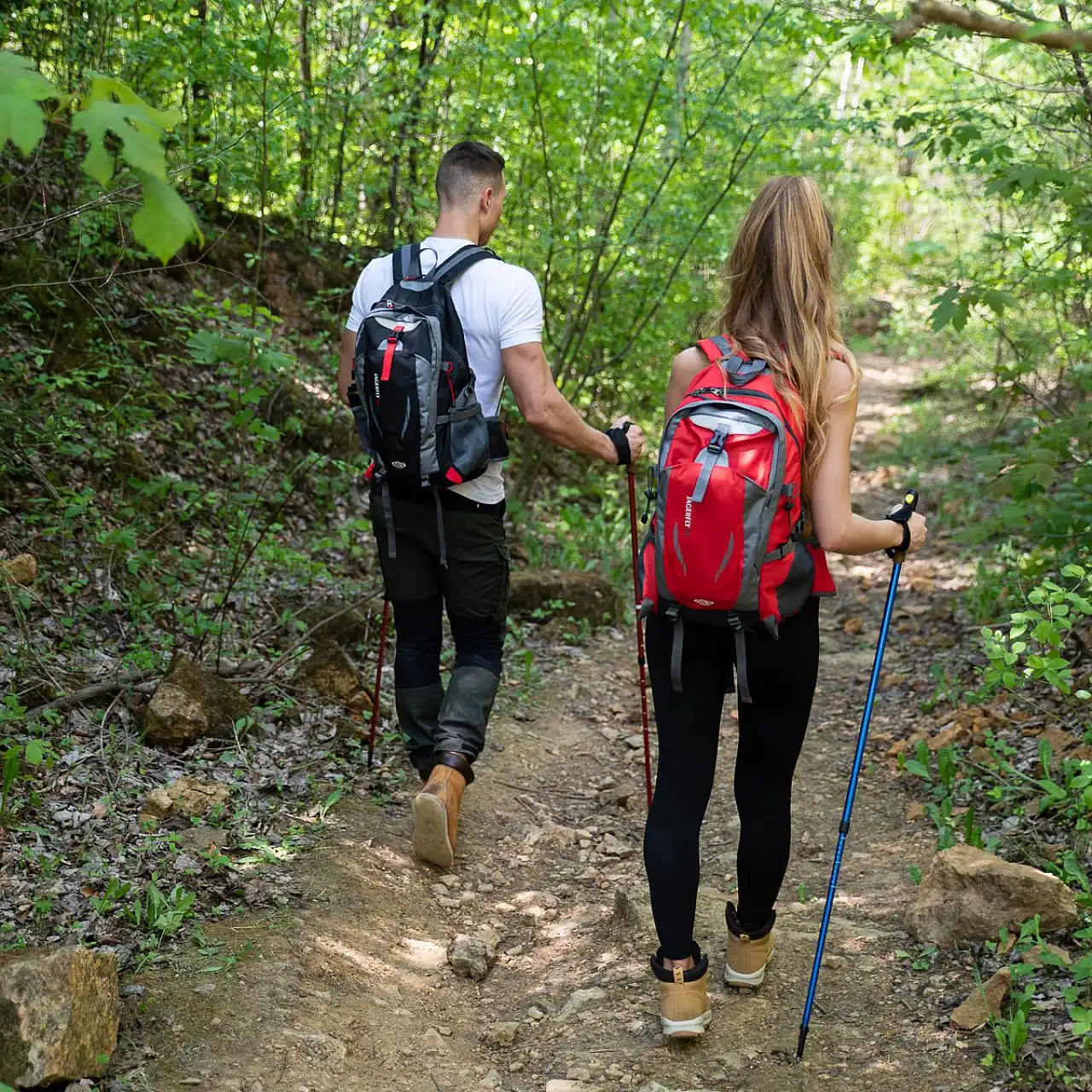 З обох боків рюкзака є регульовані тримачі трекінгових палиць