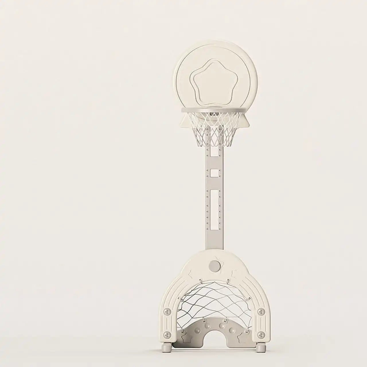 Ця баскетбольна стійка з регульованою висотою також містить ворота для міні-футболу та ключку для гольфу з м’ячем . Починаючи з 3 років , ваша дитина може вправлятися в ударах, кидати по воротах або махати в гольф!