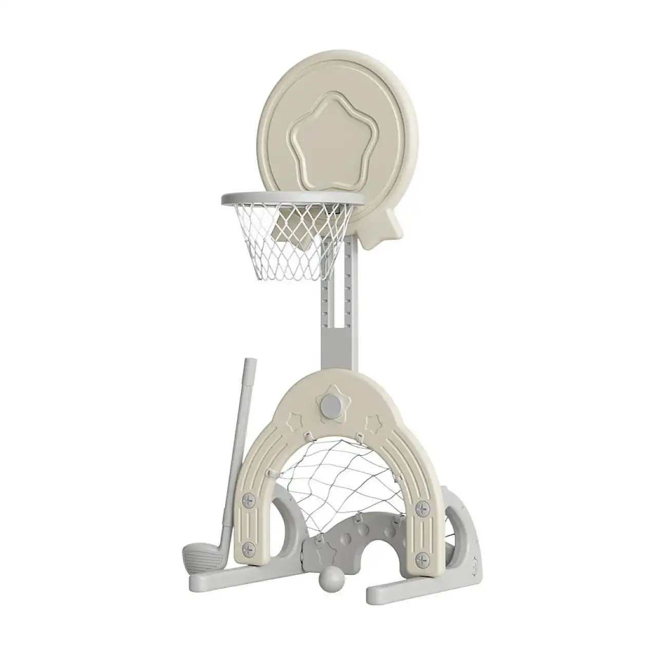 Дитяча баскетбольна стійка, футбольні ворота та набір для гольфу – все в одному! Висоту підставки можна регулювати для дітей від 3 років!